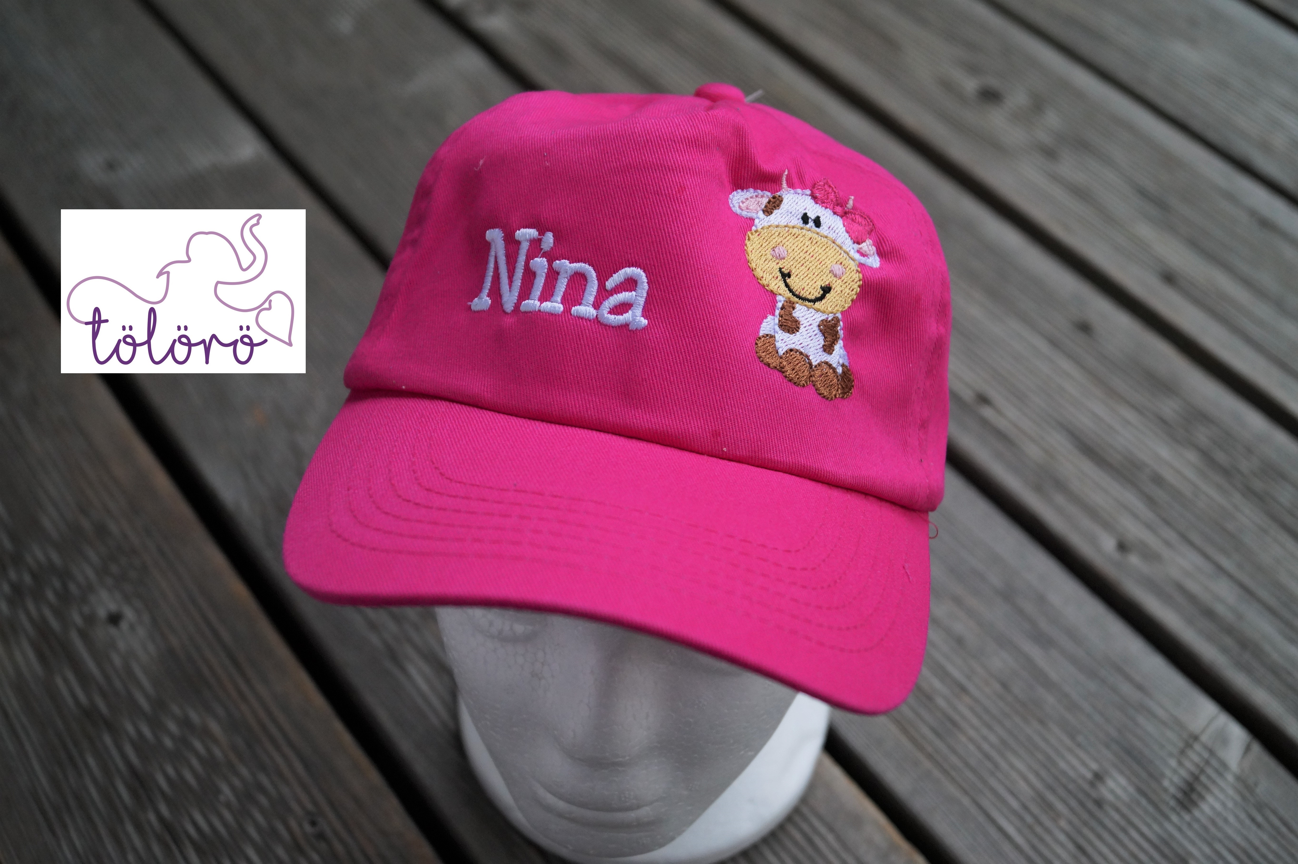 Individuell besticktes Kinder Cap mit Name und Kuh