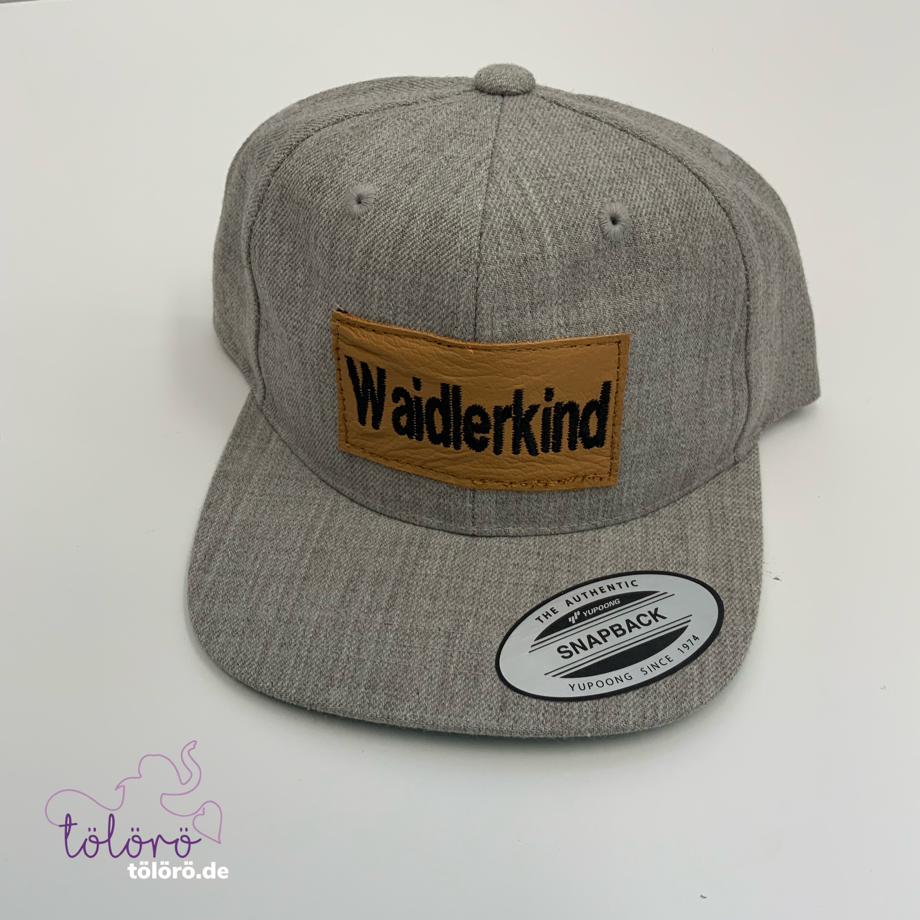 Individuell besticktes Kinder Cap mit hellbraunen, echtem Lederpatch