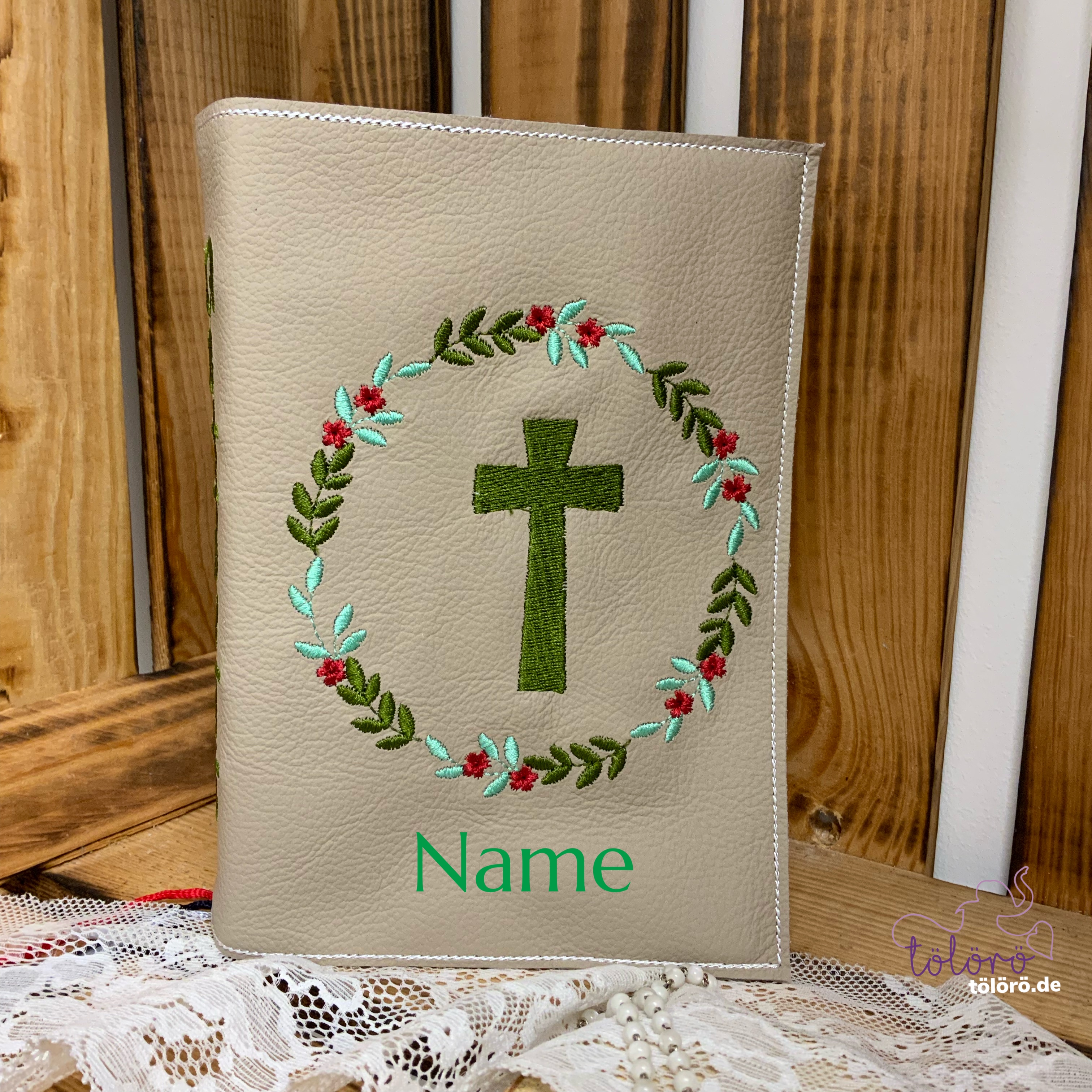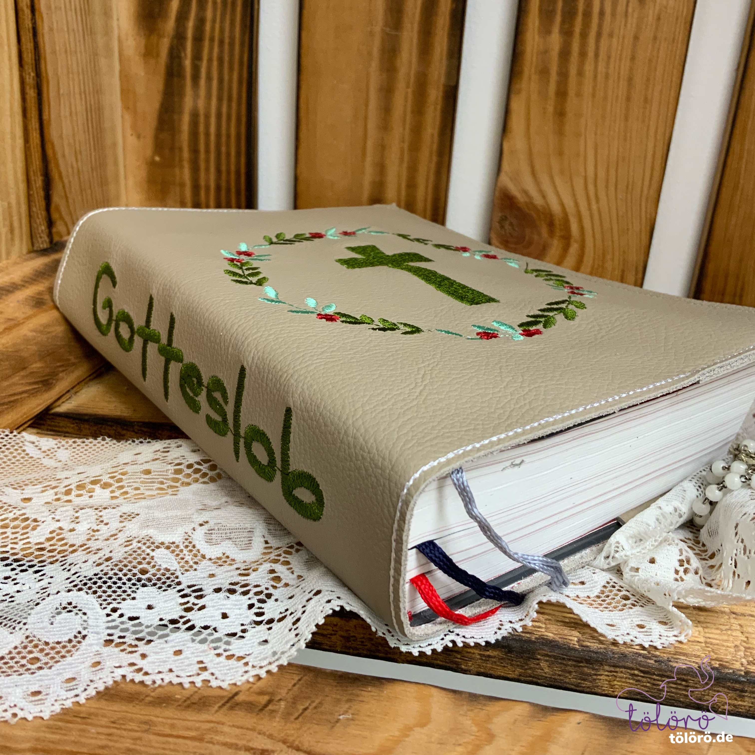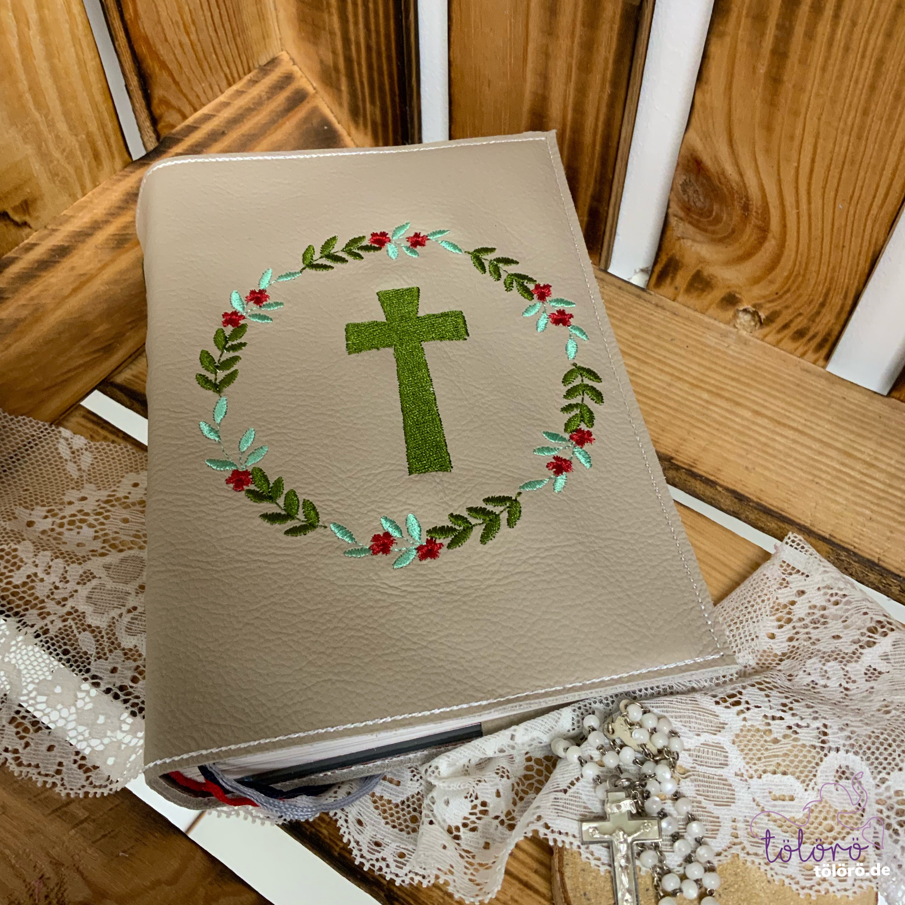 Gotteslobhülle Blätterkreis zweifarbig mit Kreuz breit