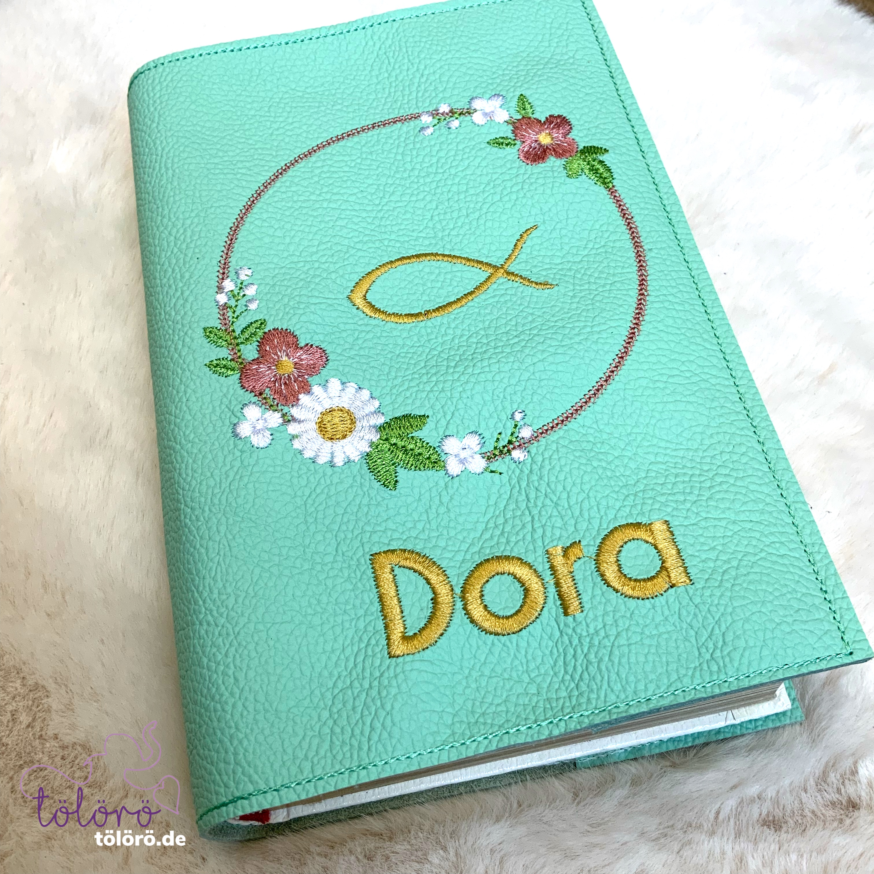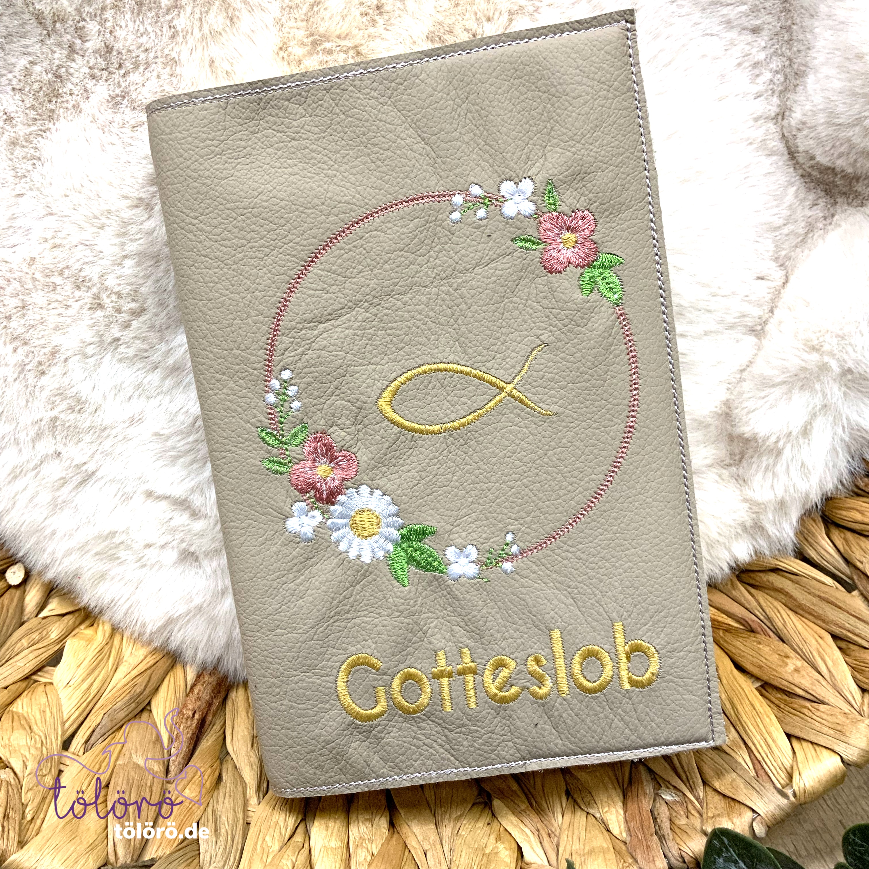 Gotteslobhülle Blumenkreis mit Fisch