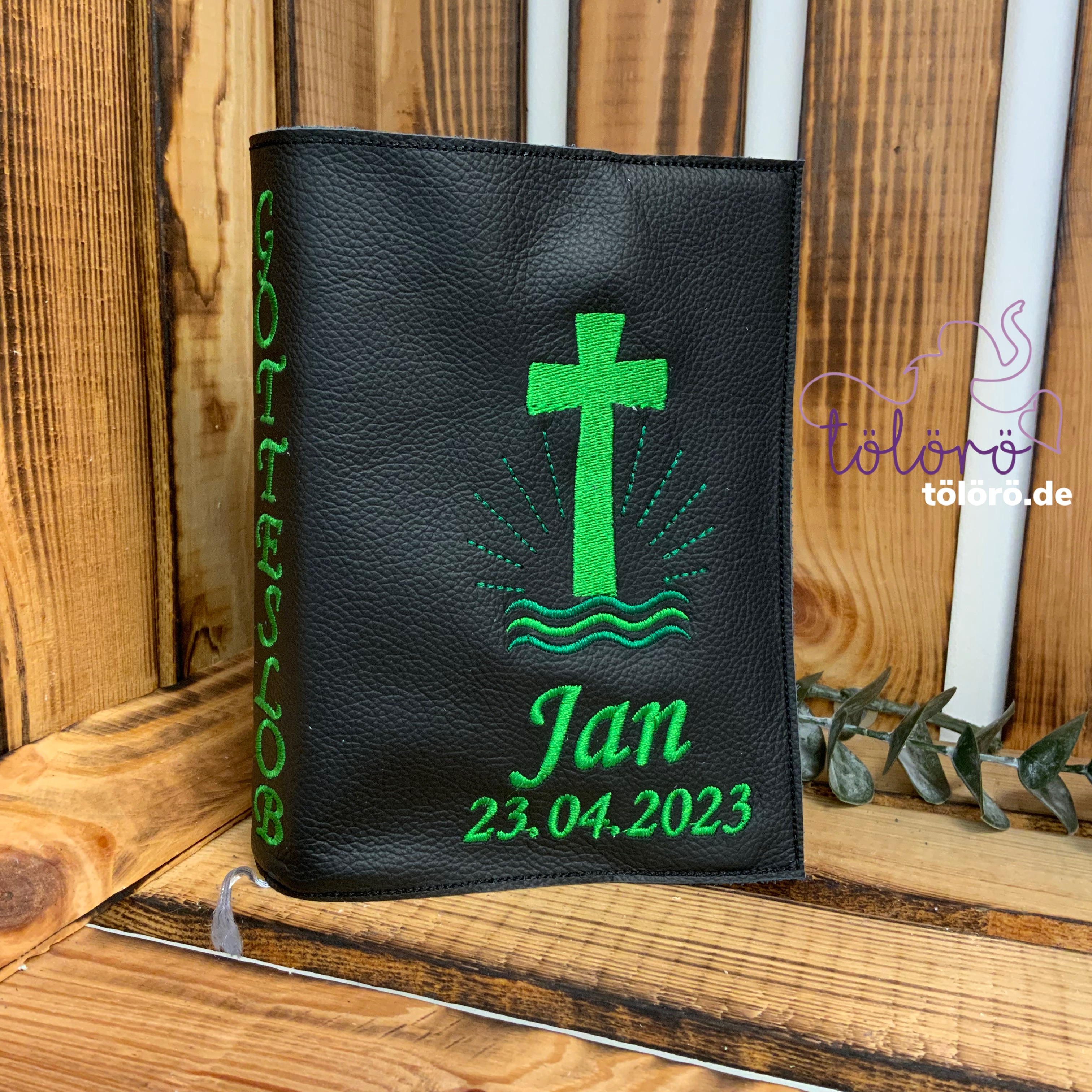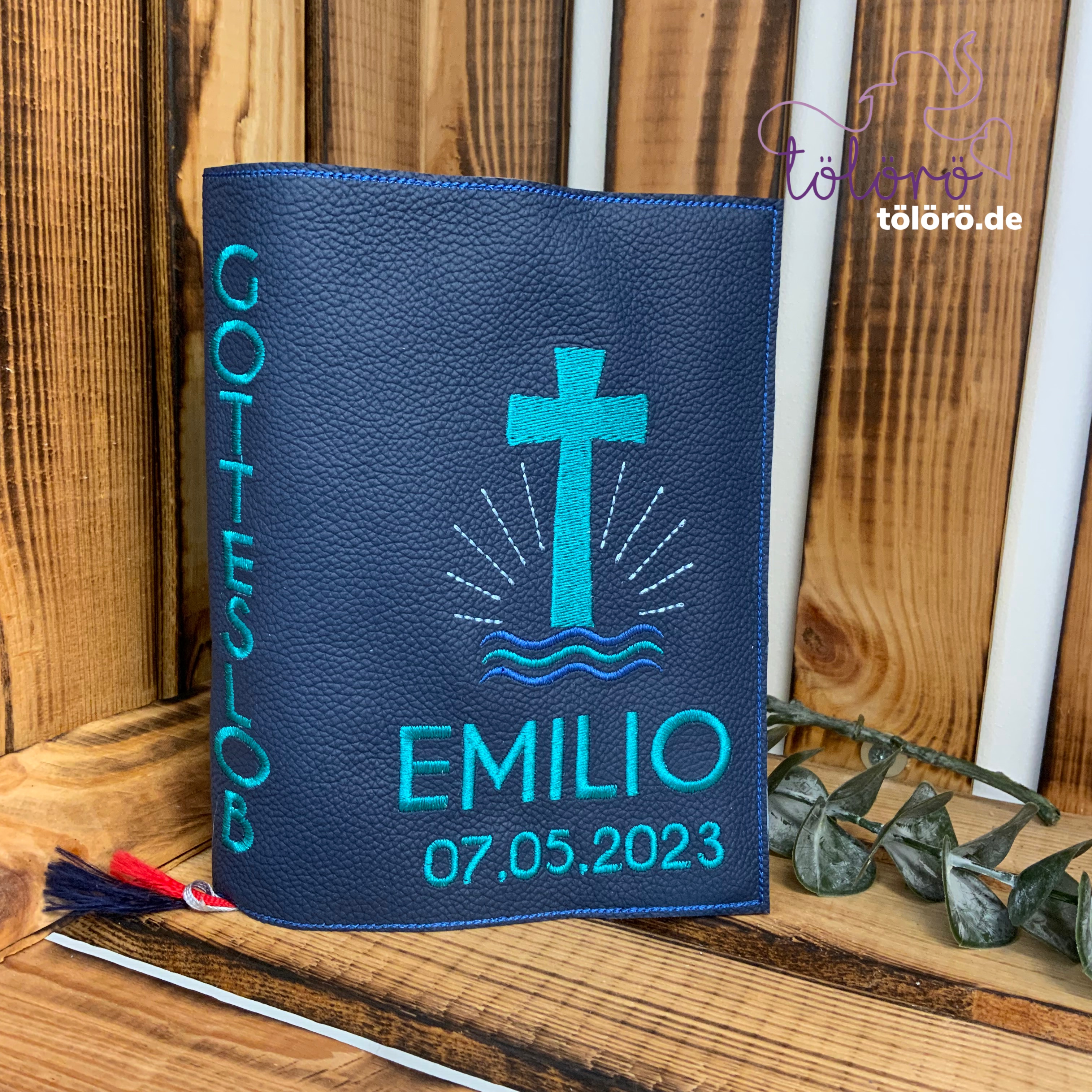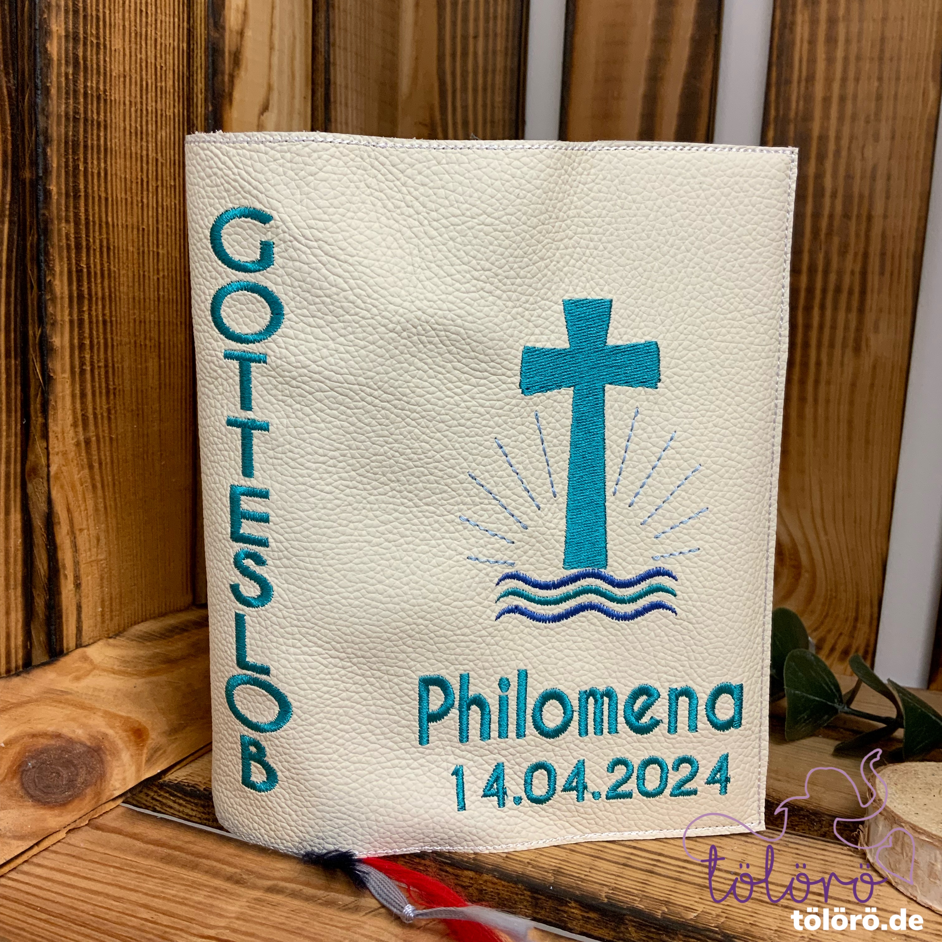 Gotteslobhülle gefülltes Kreuz mit Wellen