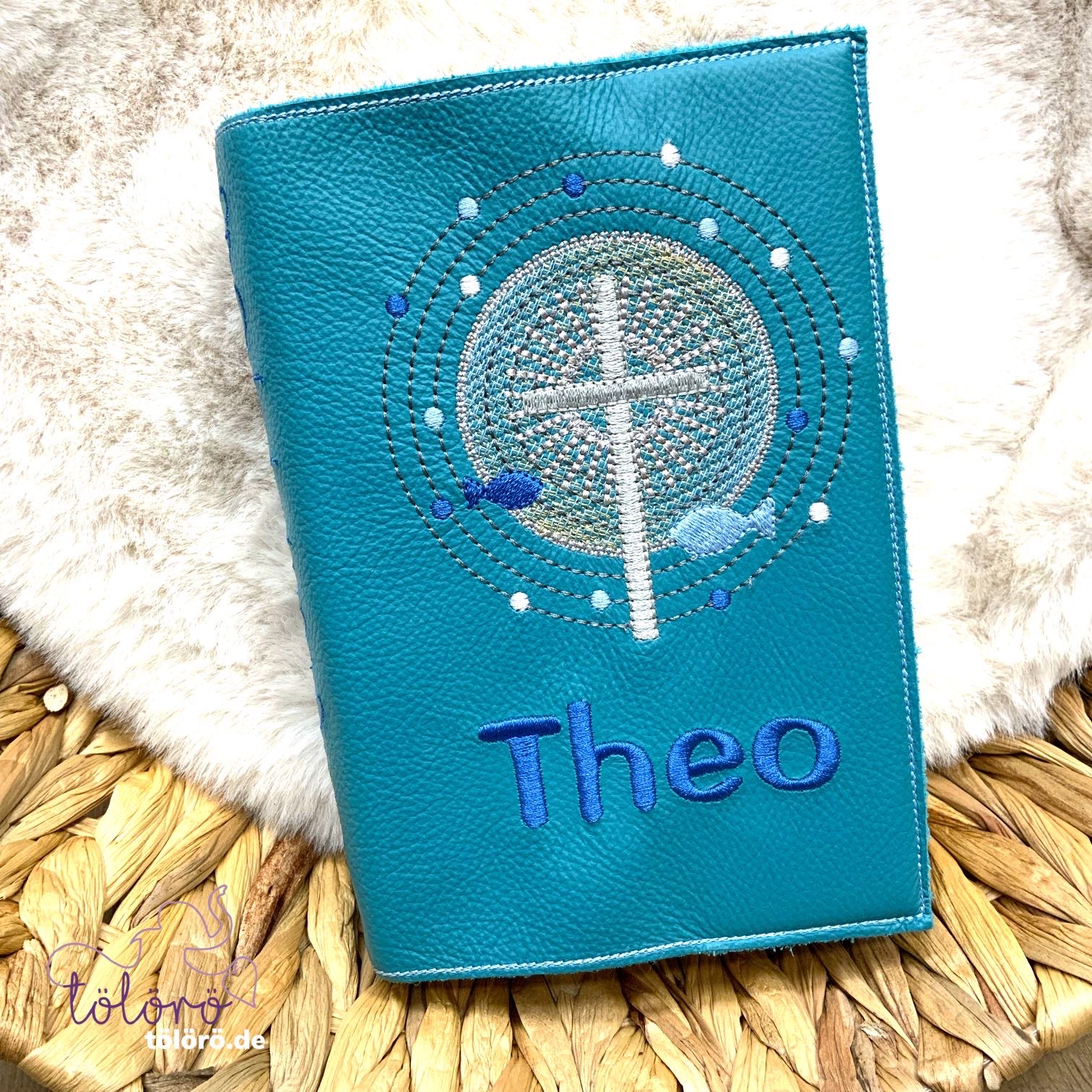 Gotteslobhülle Kreuz mit großem Lichtkreis und Fische „Theo“
