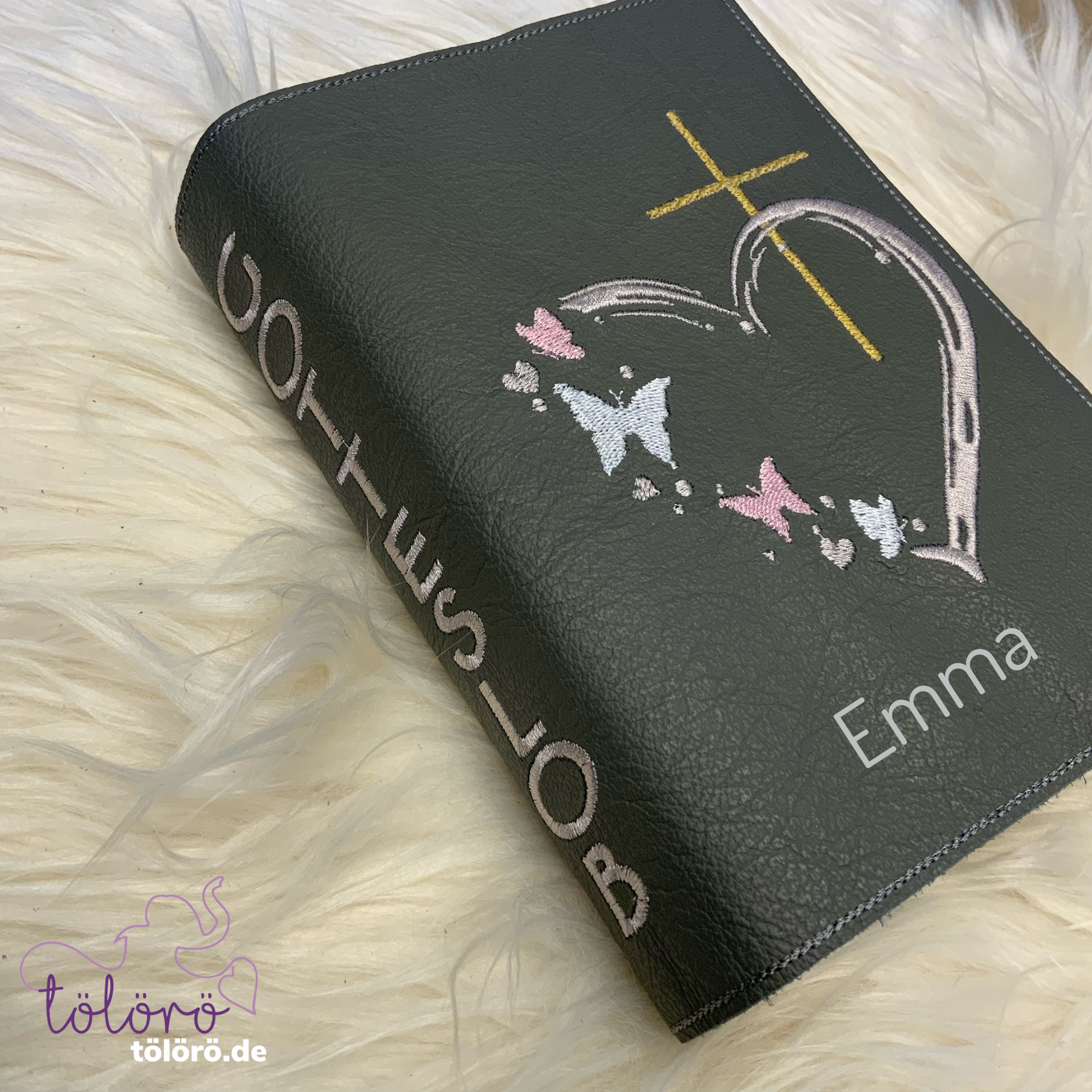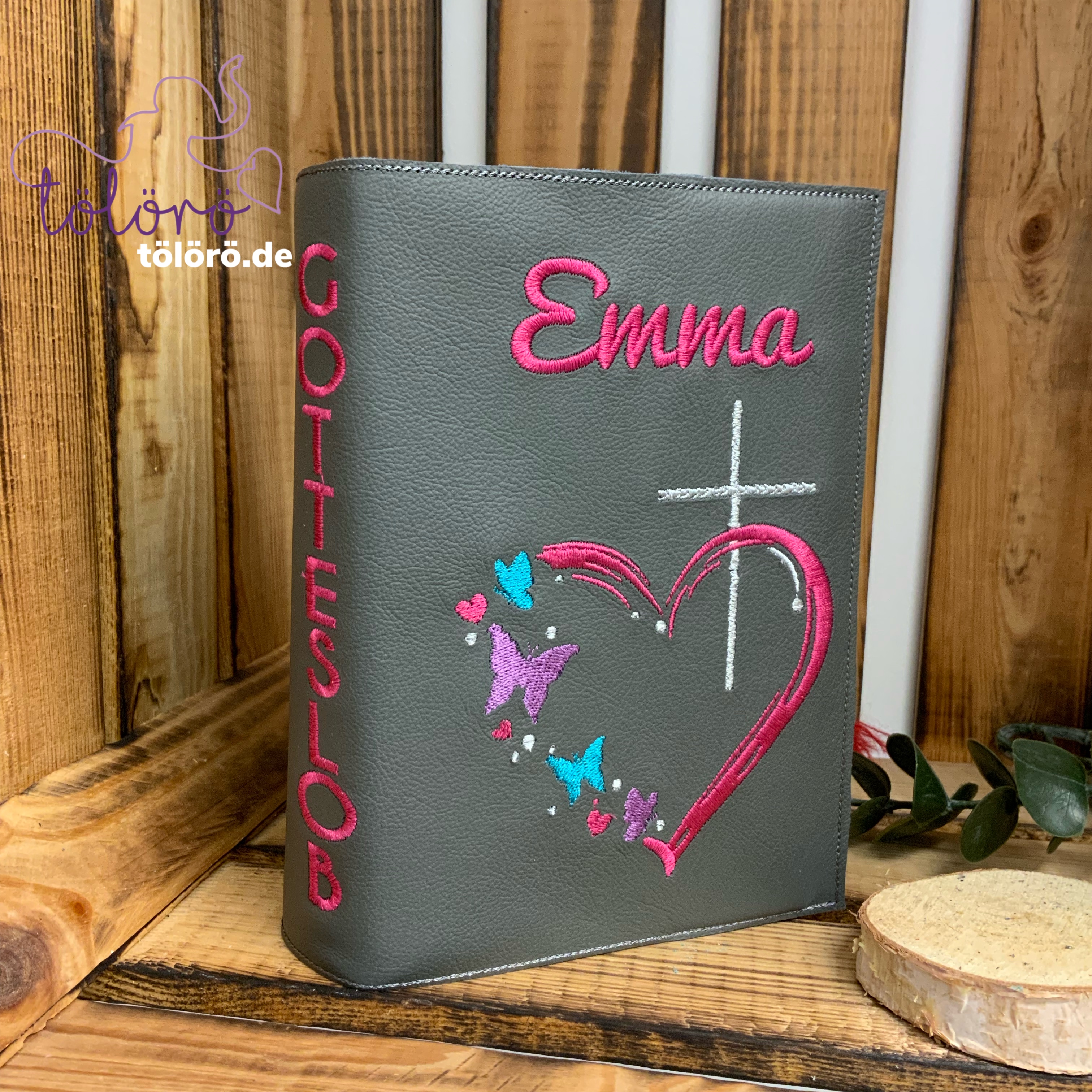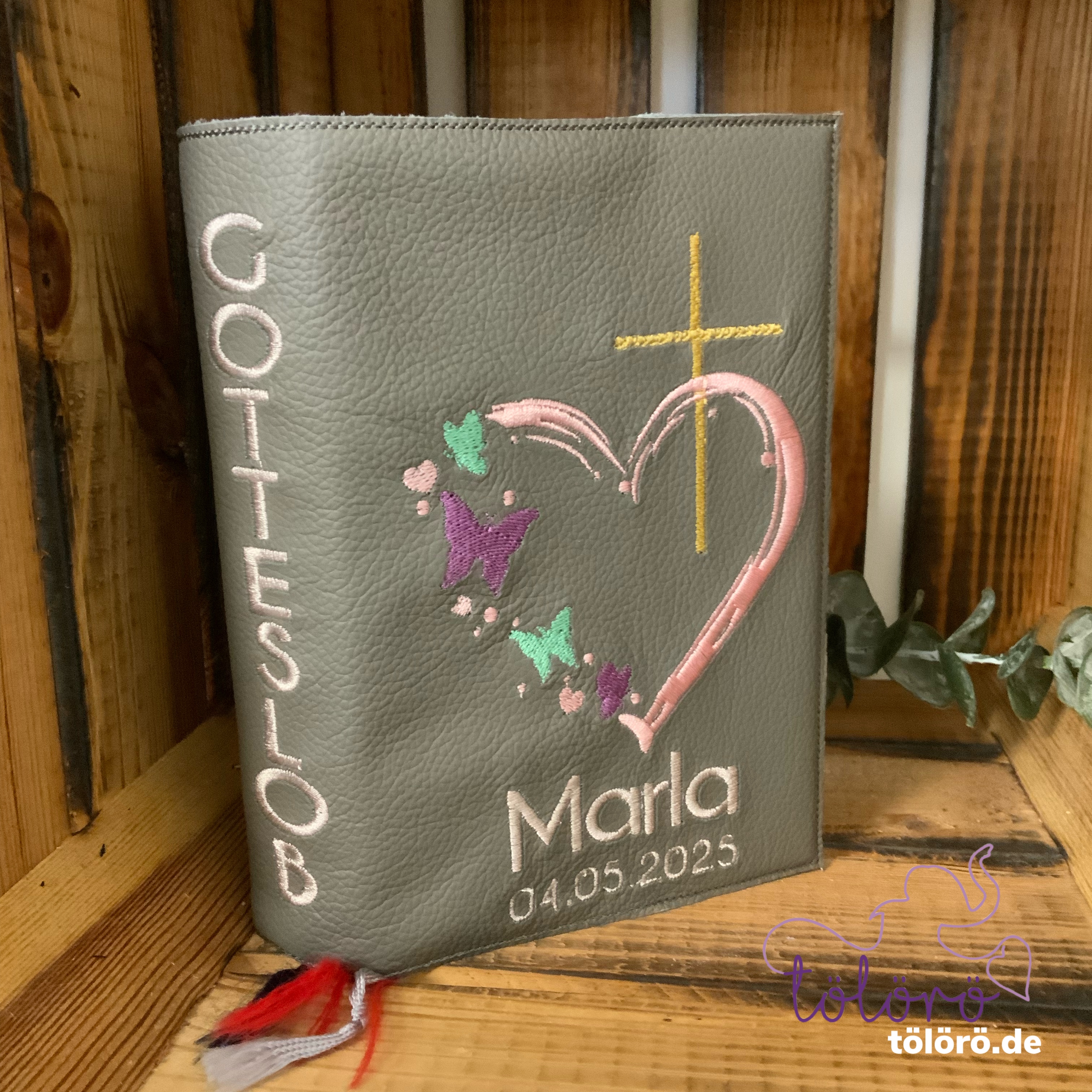 Gotteslobhülle Kreuz mit Herz und Schmetterlinge