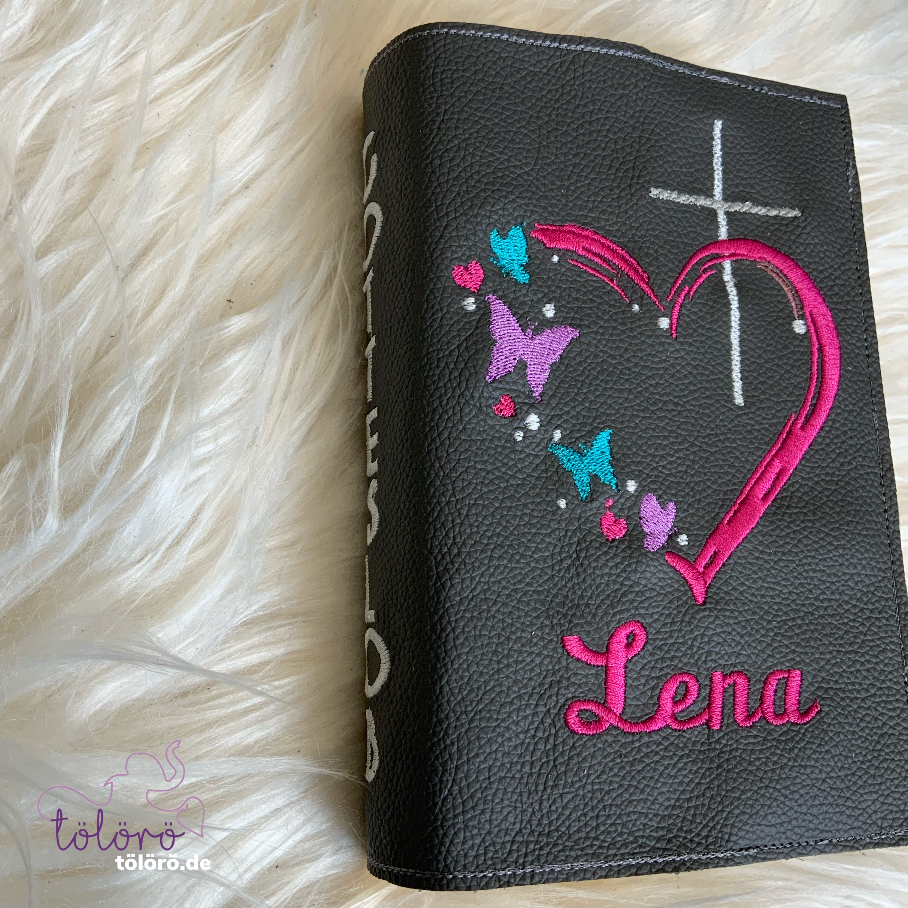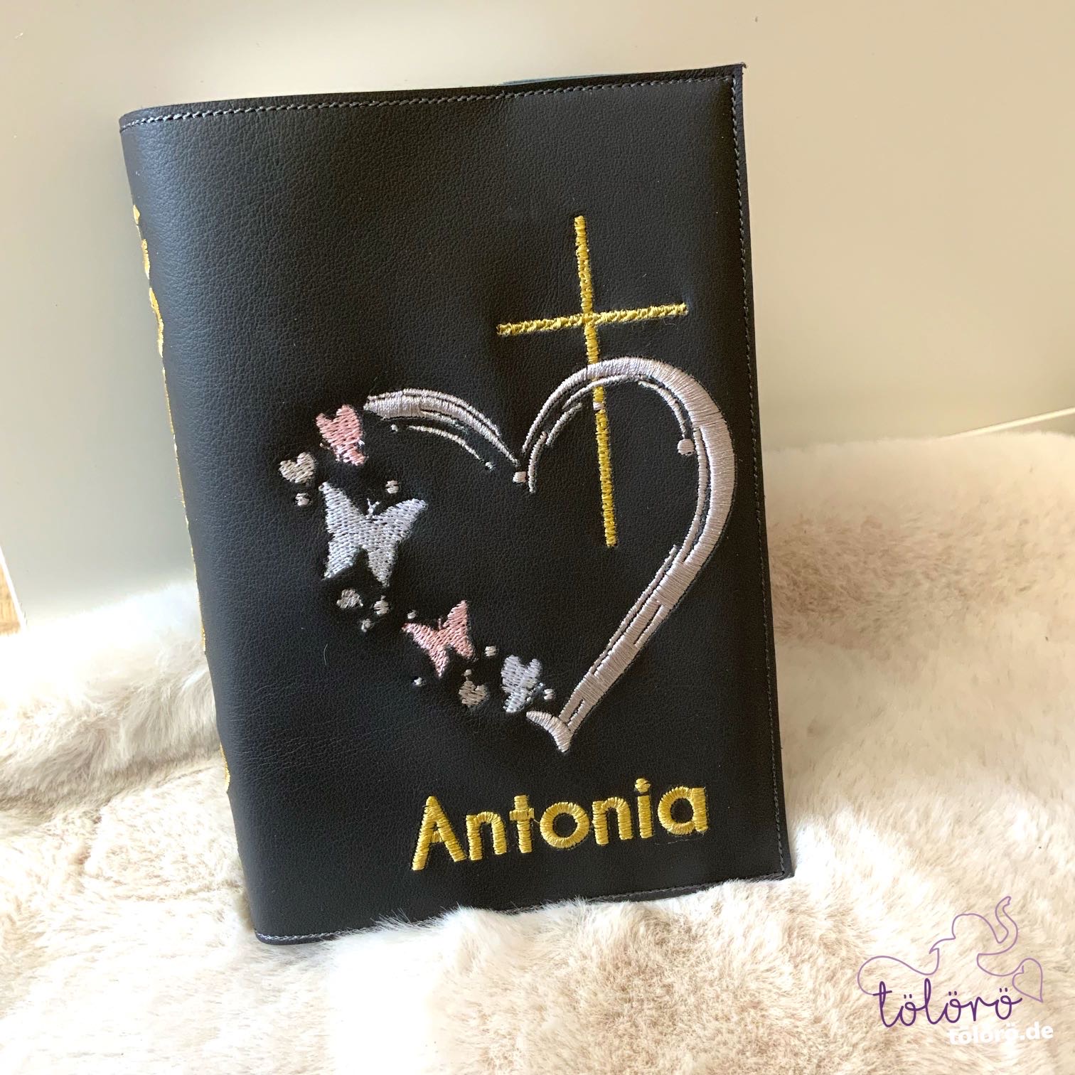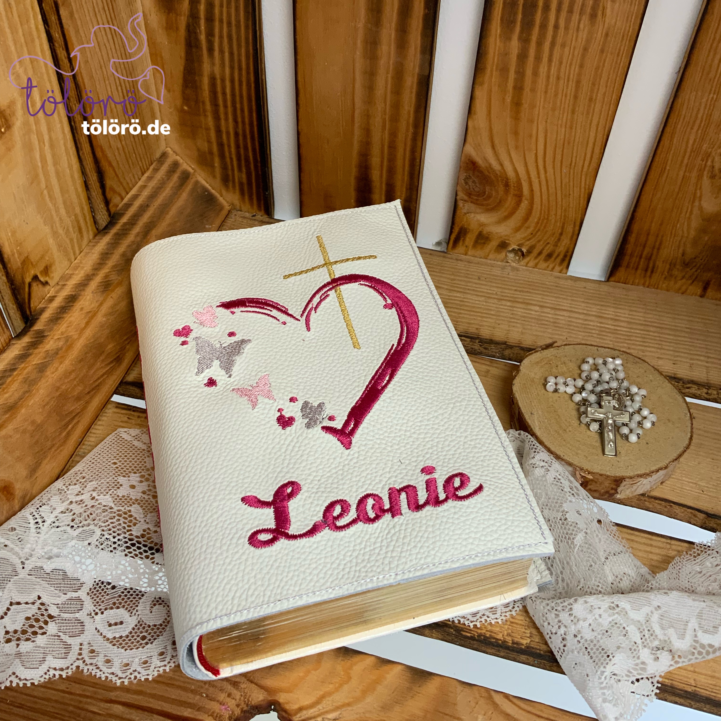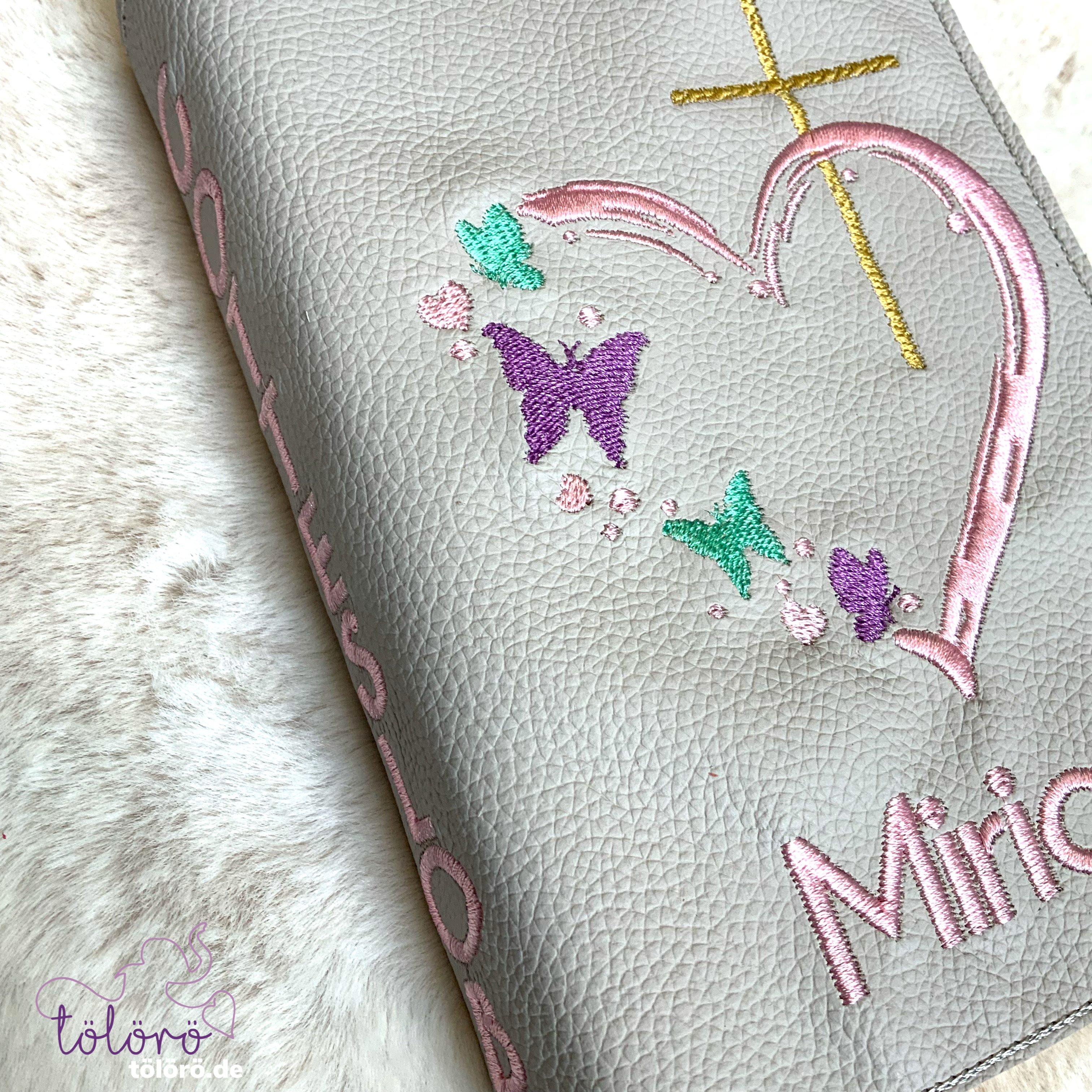 Gotteslobhülle Kreuz mit Herz und Schmetterlinge