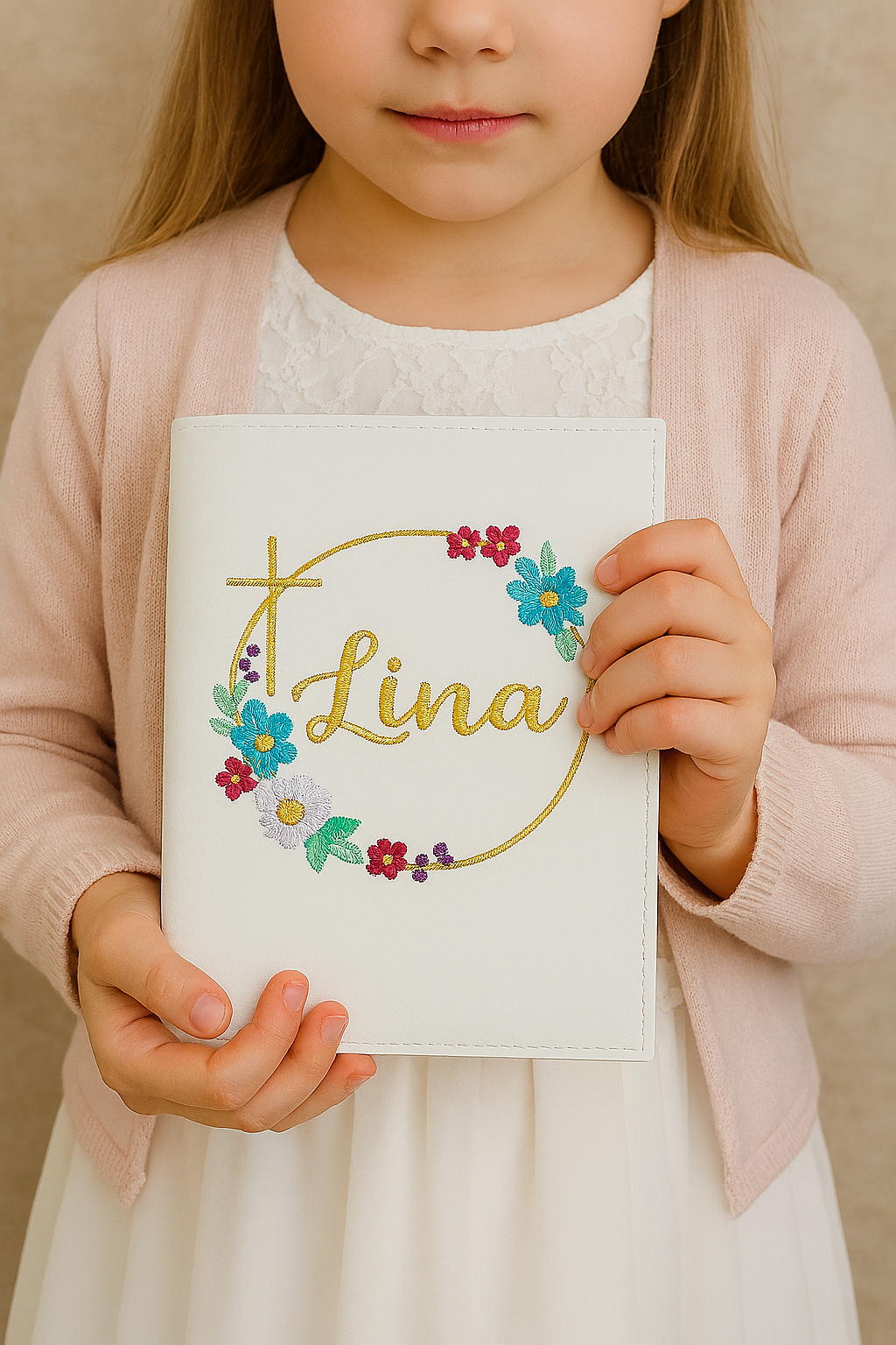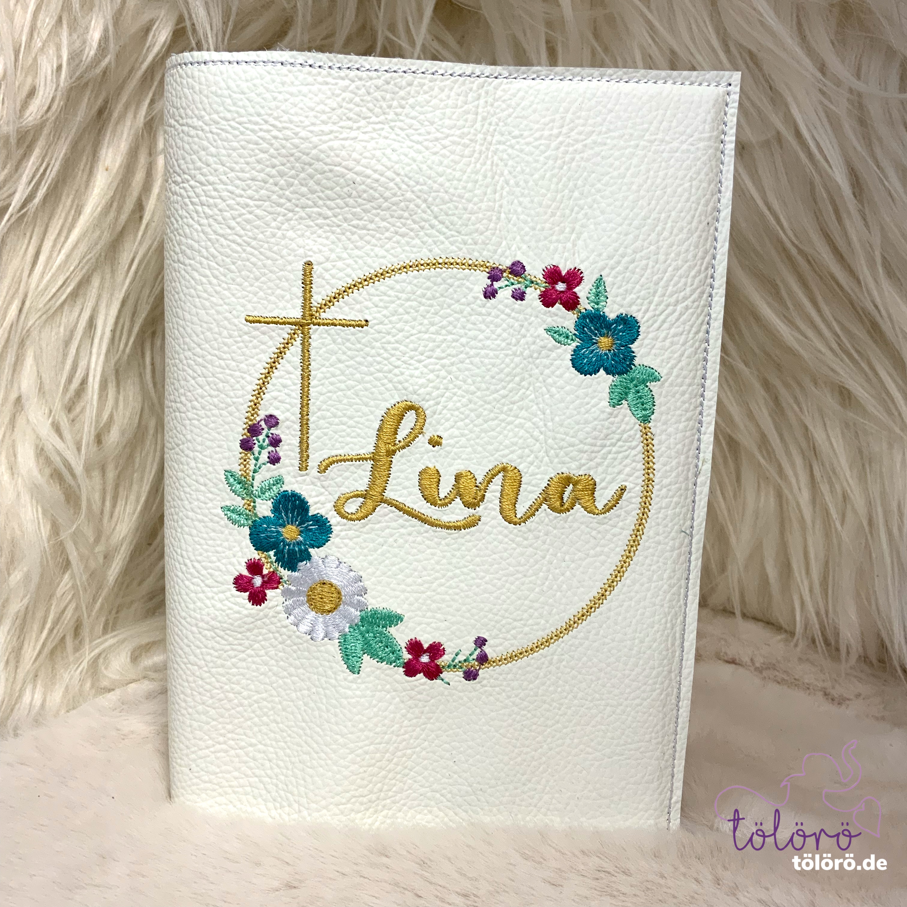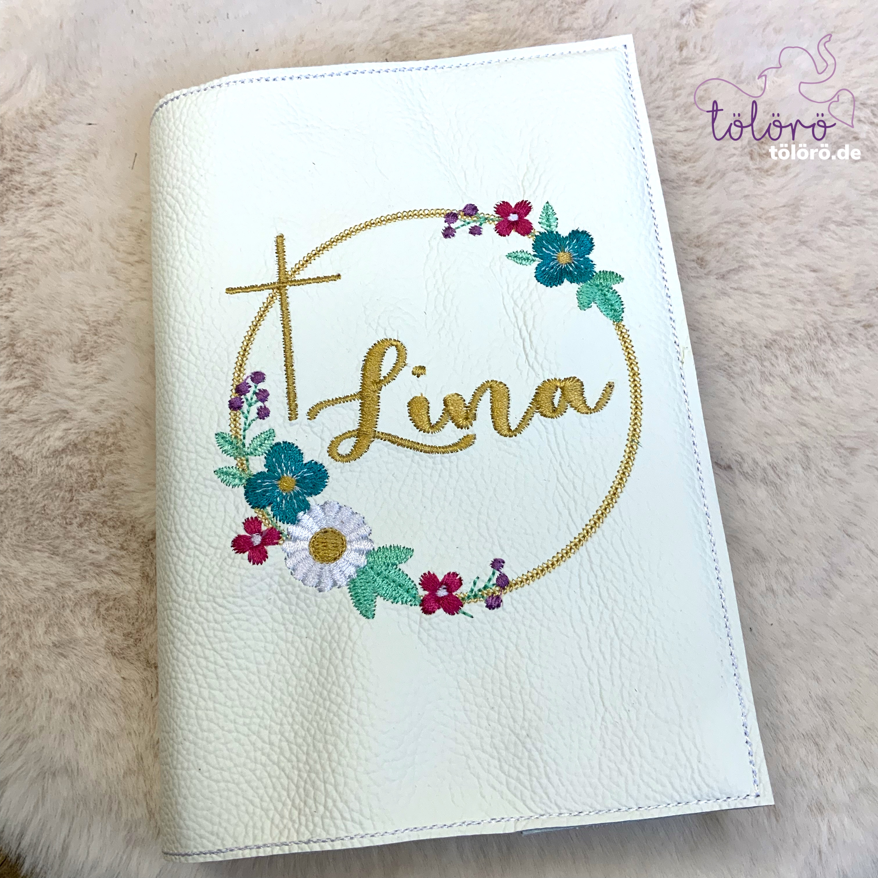Gotteslobhülle Name im Blumenkreis mit Kreuz