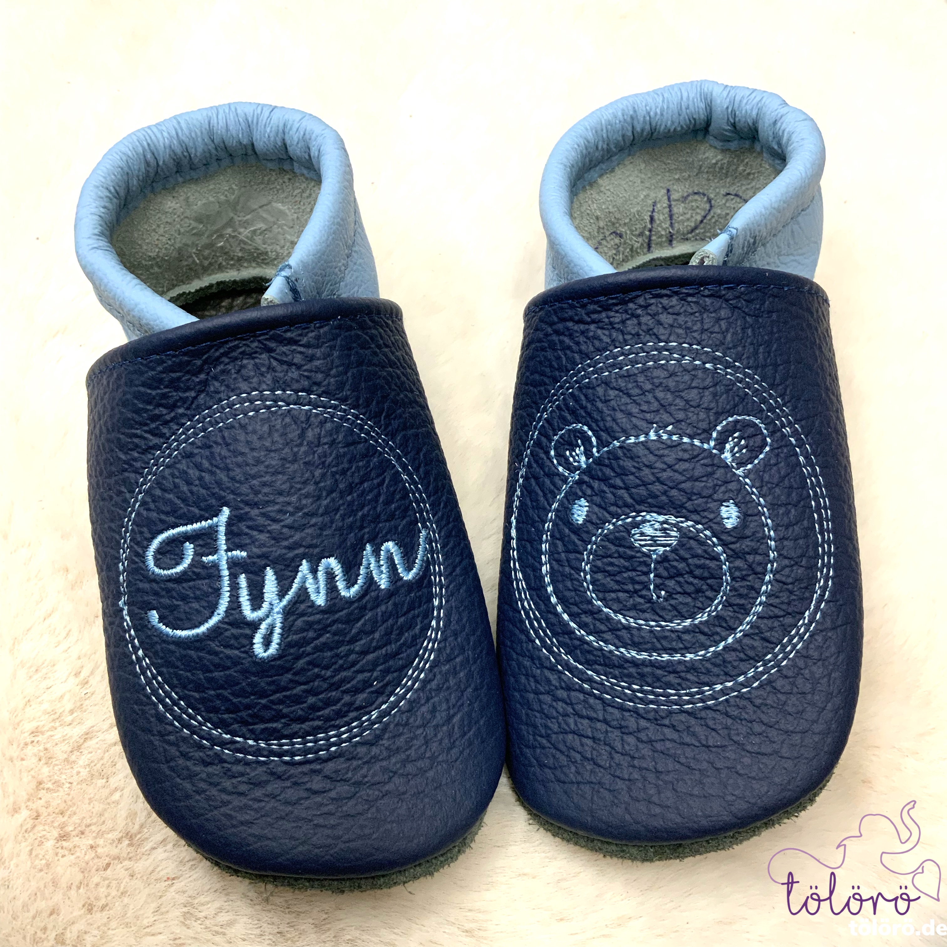 Personalisierte Lederpuschen aus echtem Leder – handgemacht & individuell bestickt