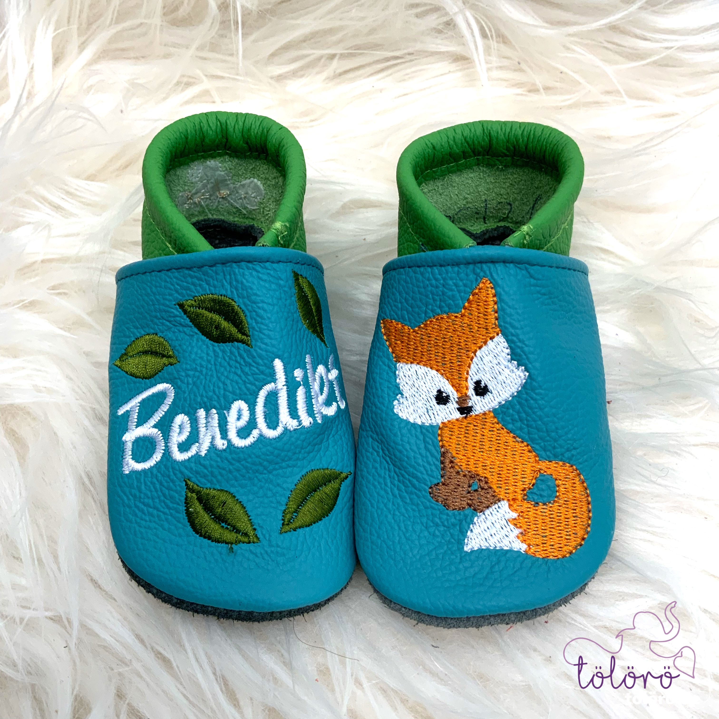 Personalisierte Lederpuschen aus echtem Leder – handgemacht & individuell bestickt