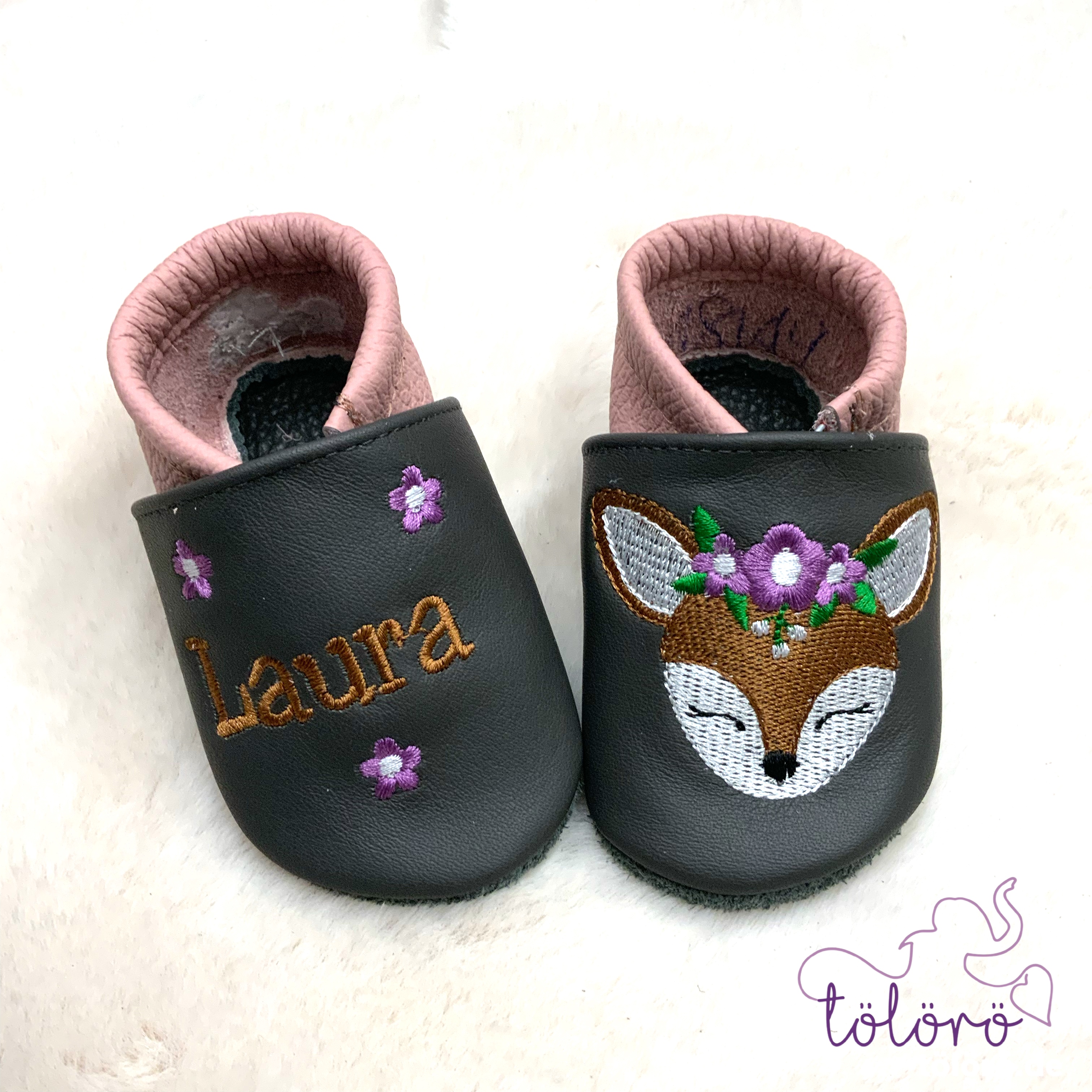 Personalisierte Lederpuschen aus echtem Leder – handgemacht & individuell bestickt