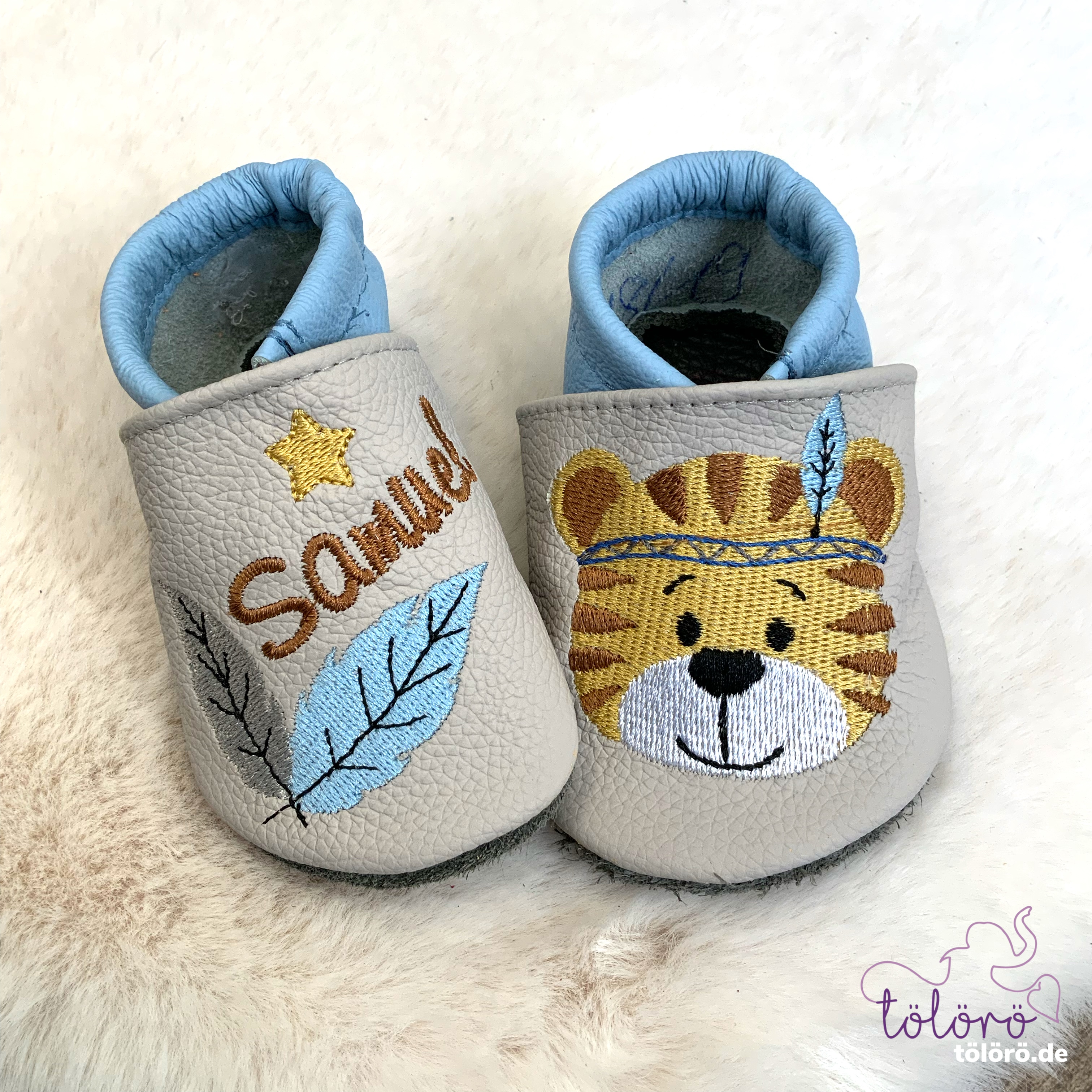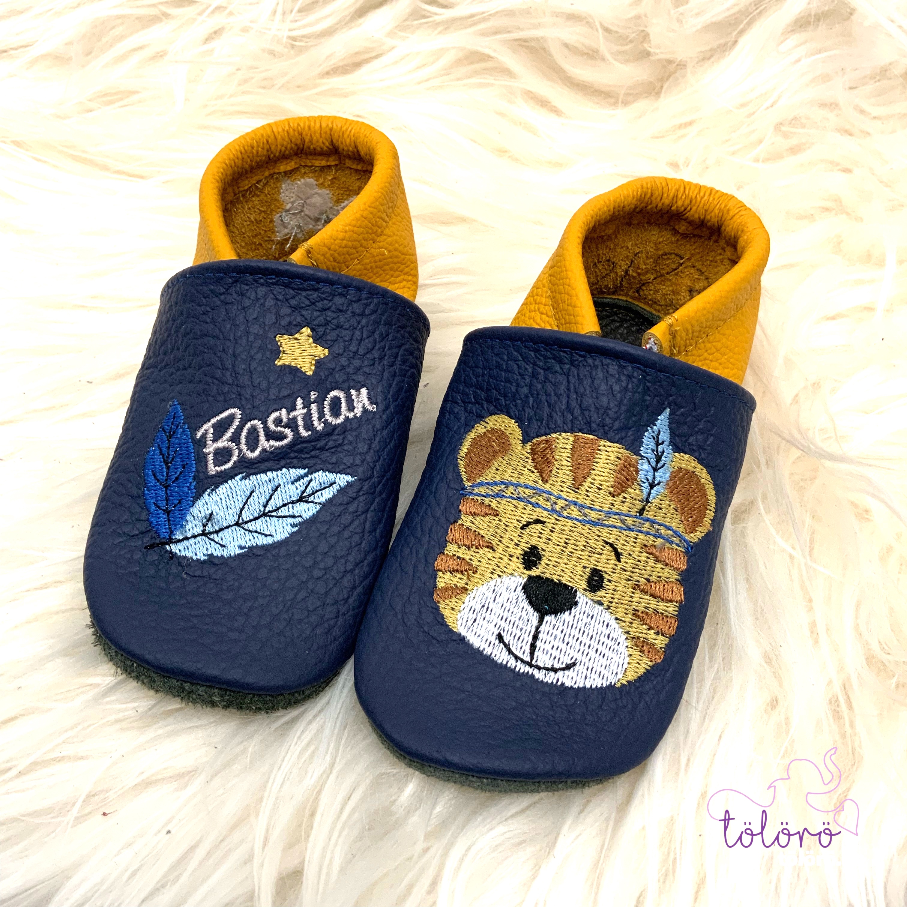 Personalisierte Lederpuschen aus echtem Leder – handgemacht & individuell bestickt