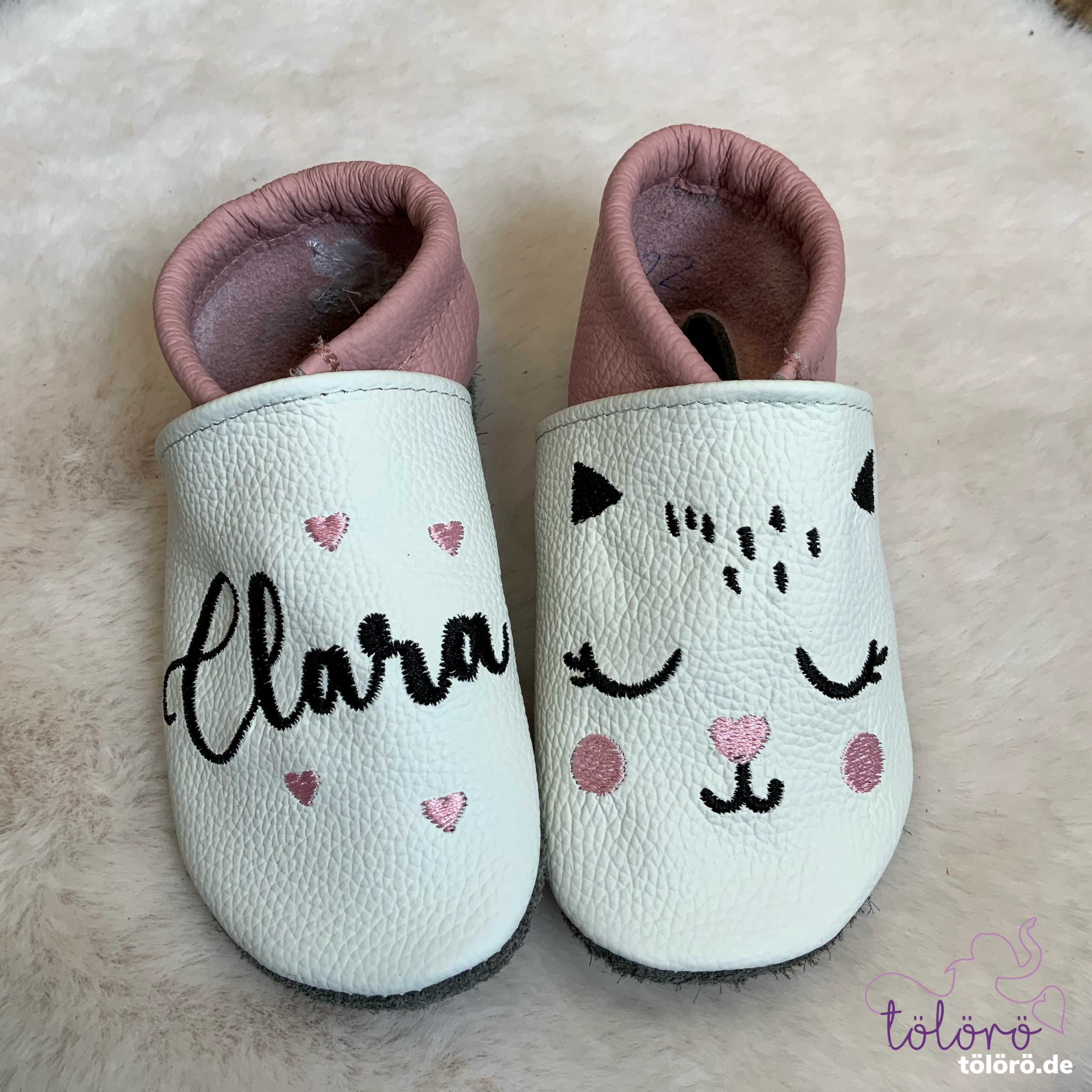 Beispiel Clara Kappe weiß, Ferse rosa