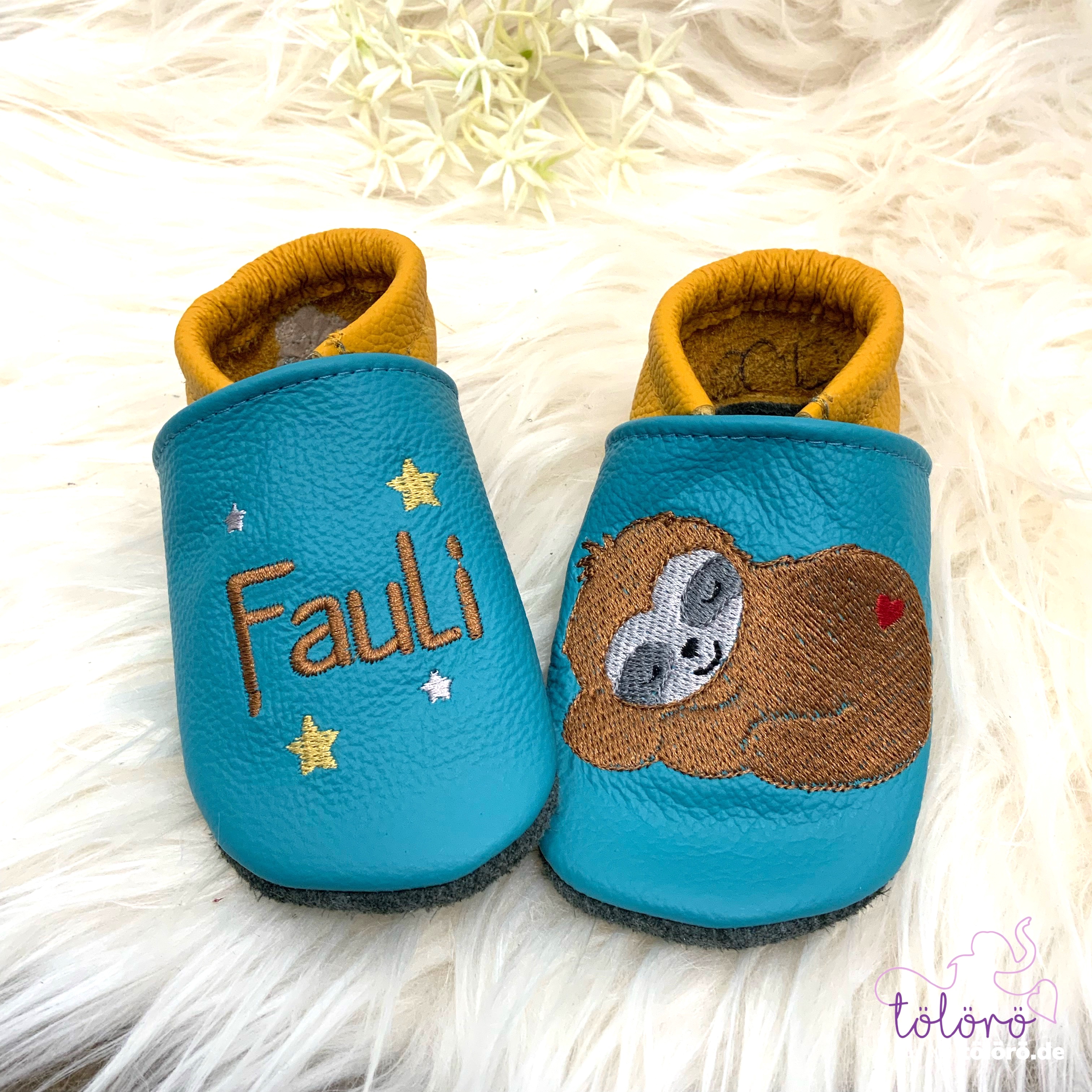 Personalisierte Lederpuschen aus echtem Leder – handgemacht & individuell bestickt