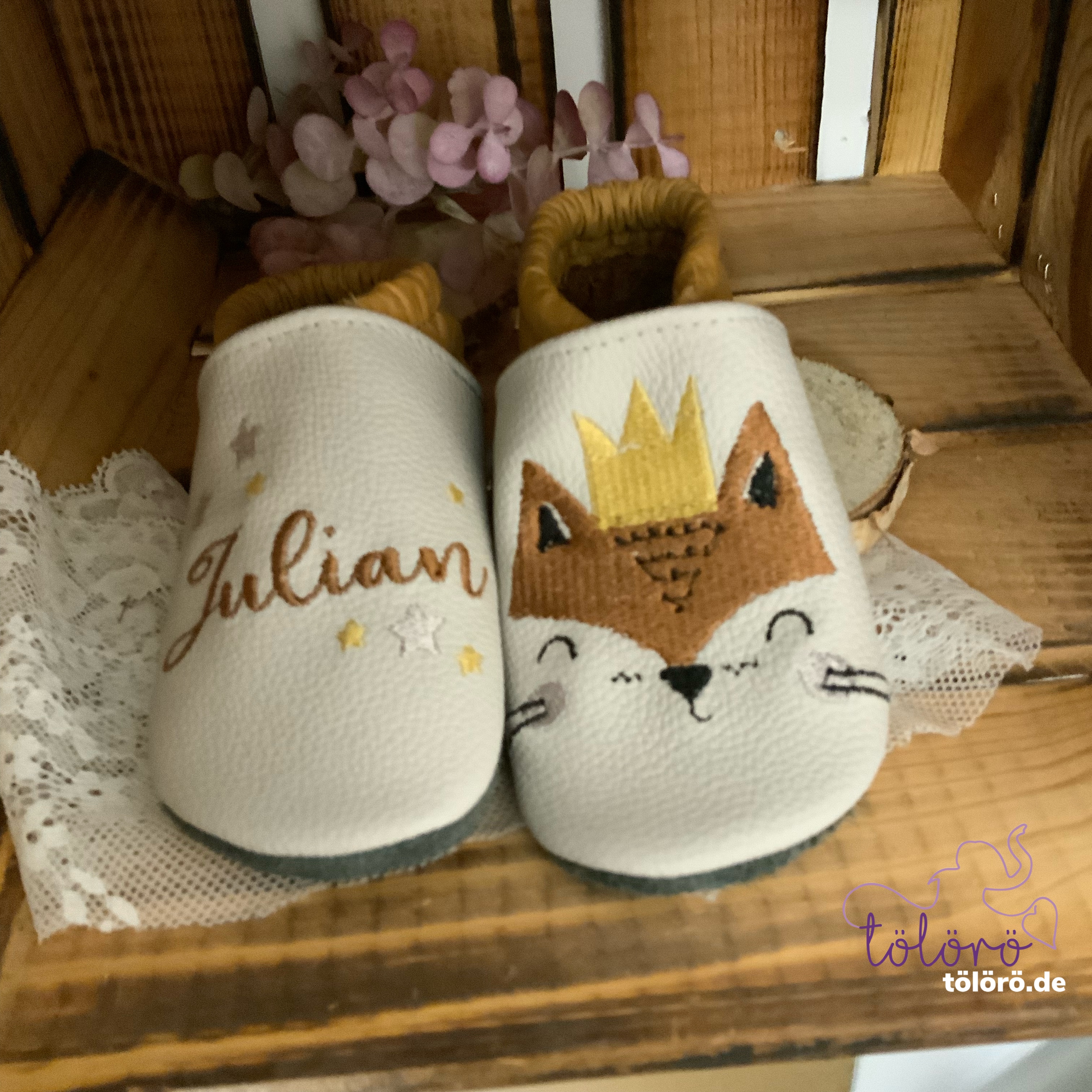 Name mit Sternen und Fuchskopf mit Krone