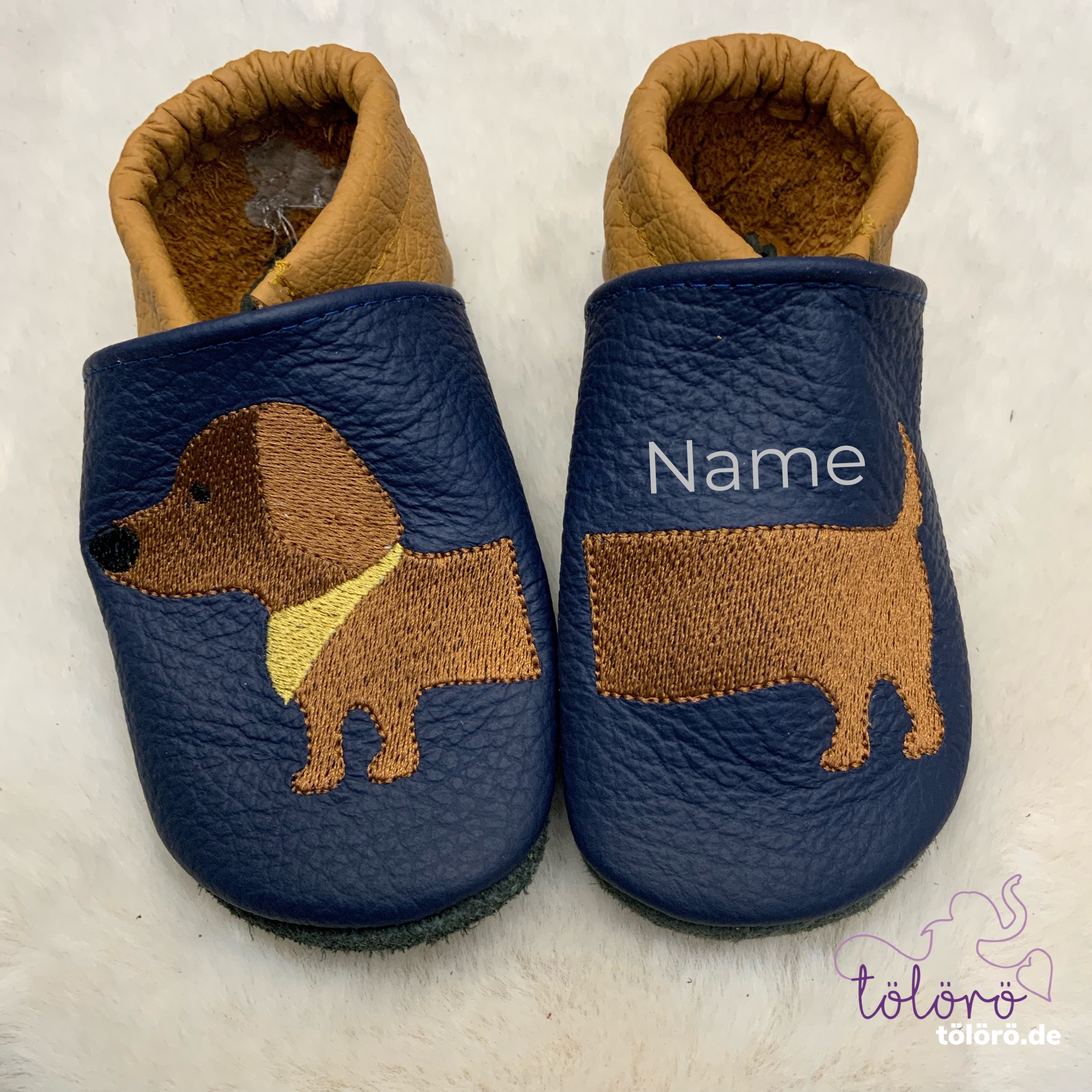 Personalisierte Lederpuschen aus echtem Leder – handgemacht & individuell bestickt