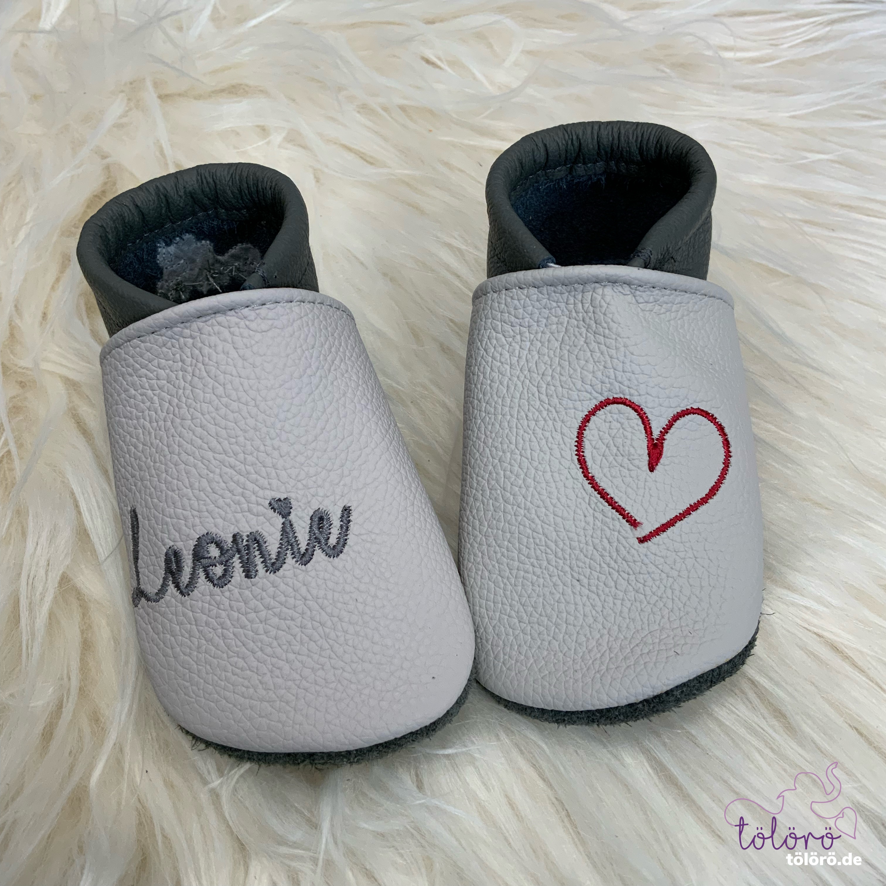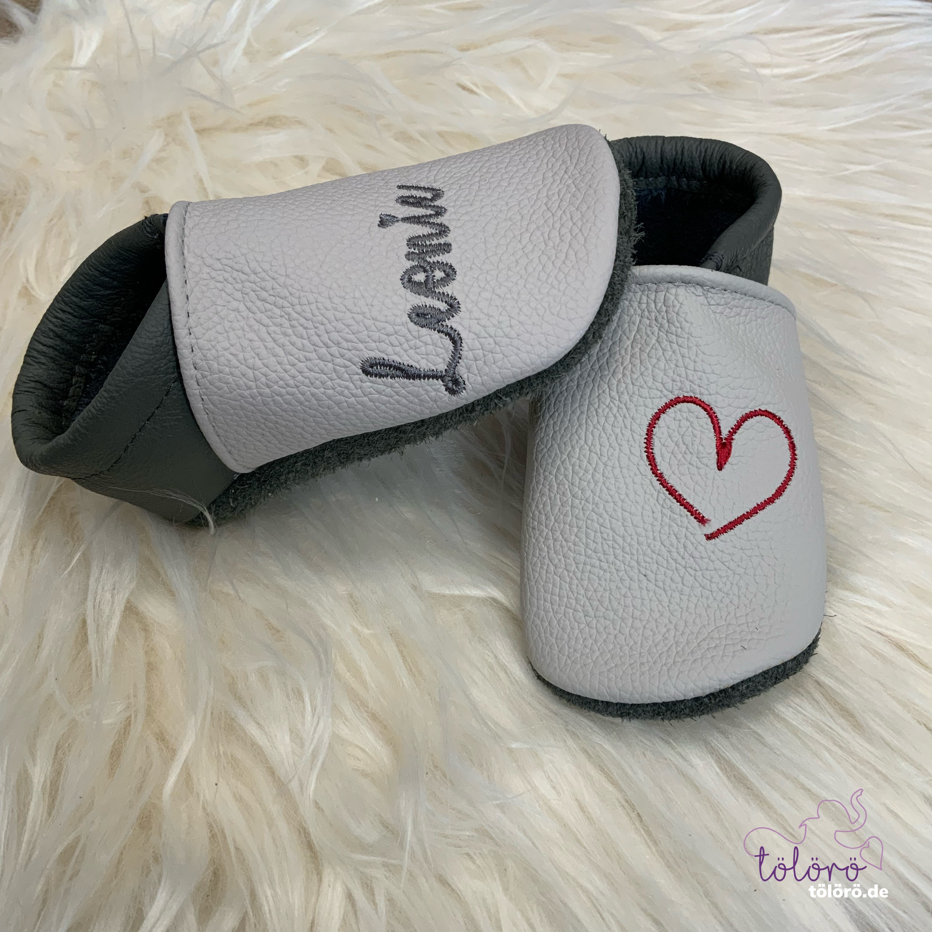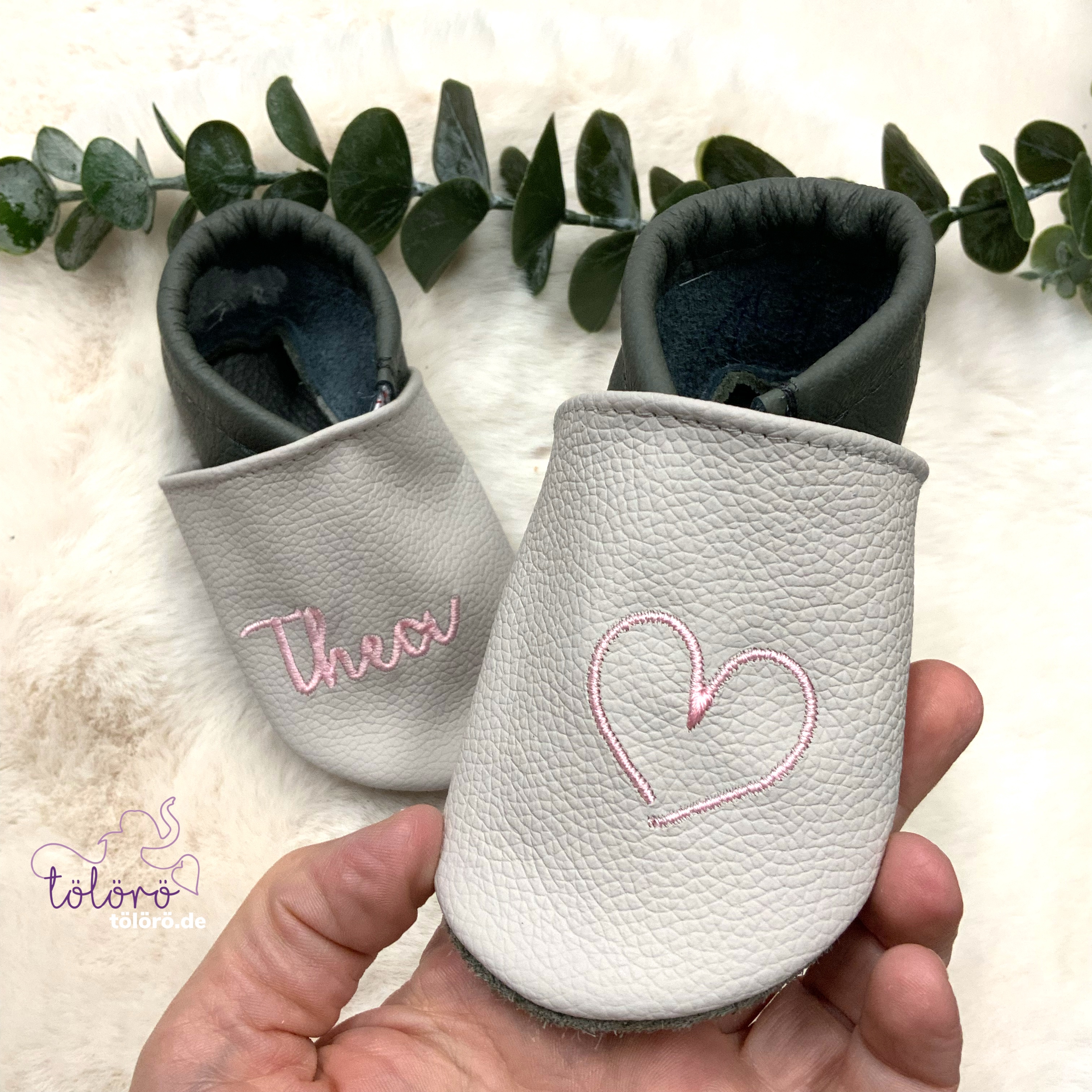 Unsere Lederpuschen mit Namen sind nicht nur praktisch, sondern auch ein emotionales Erinnerungsstück. Du bestimmst Farbe, Größe und Stickmotiv – wir setzen es in Handarbeit um.