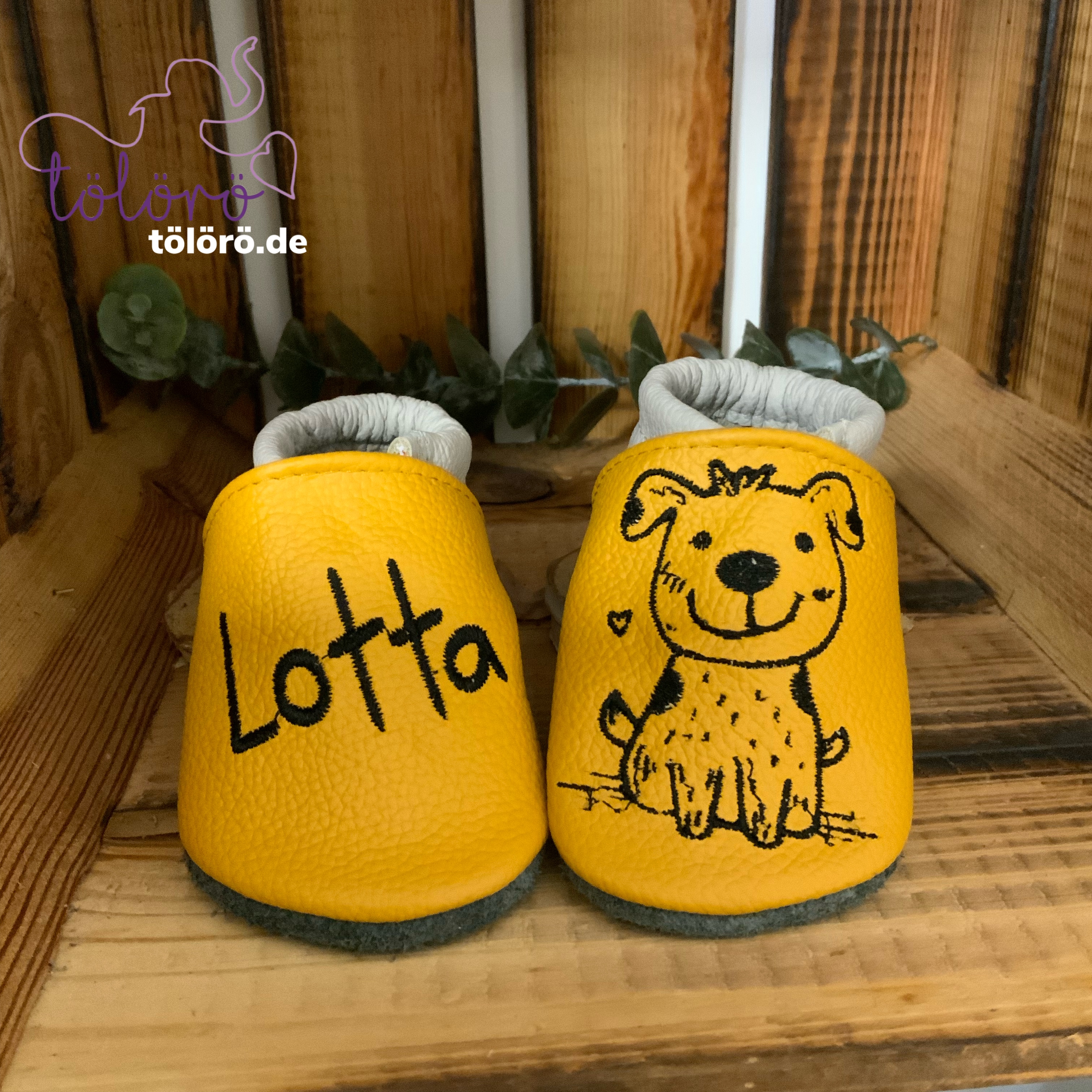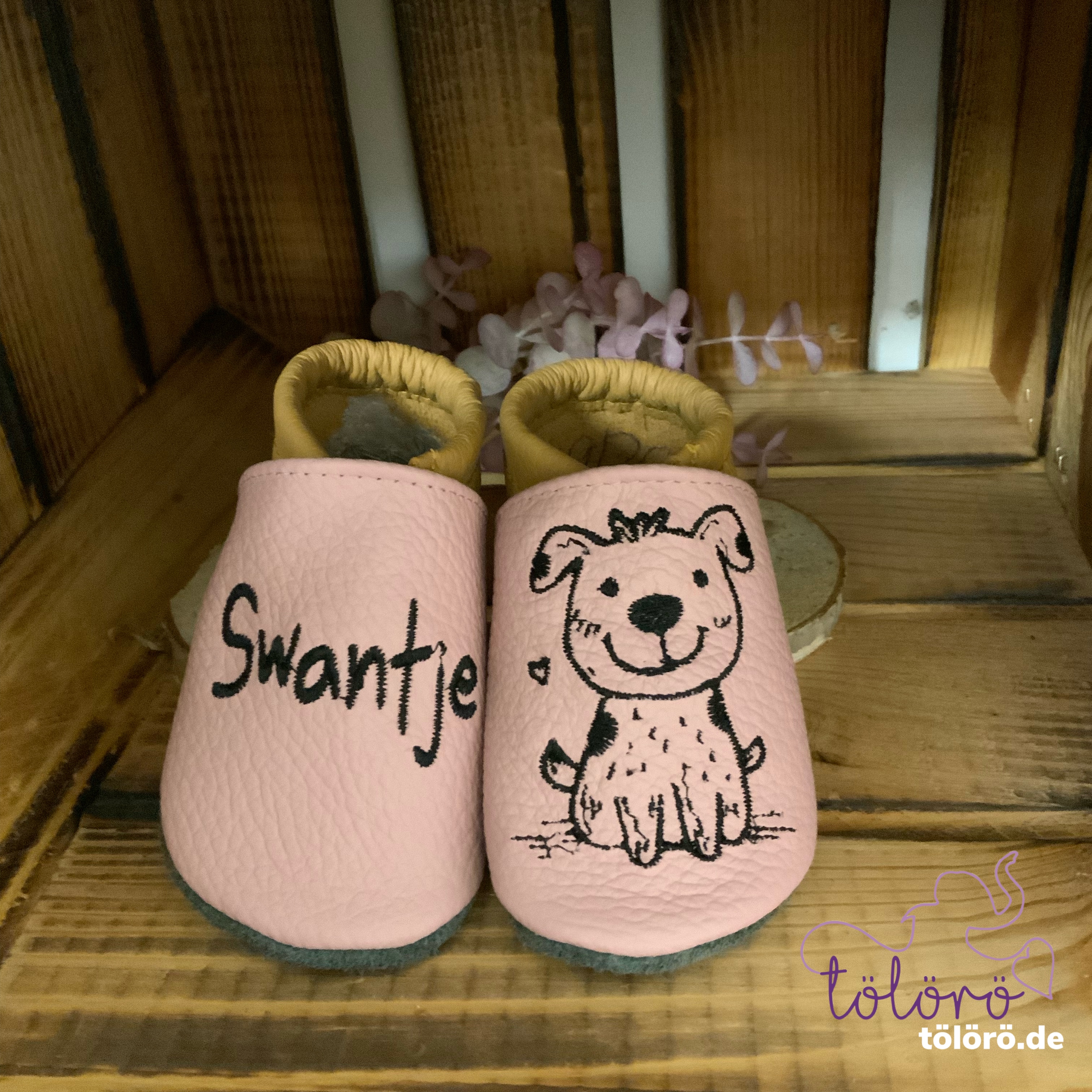 Unsere Lederpuschen mit Namen sind nicht nur praktisch, sondern auch ein emotionales Erinnerungsstück. Du bestimmst Farbe, Größe und Stickmotiv – wir setzen es in Handarbeit um.