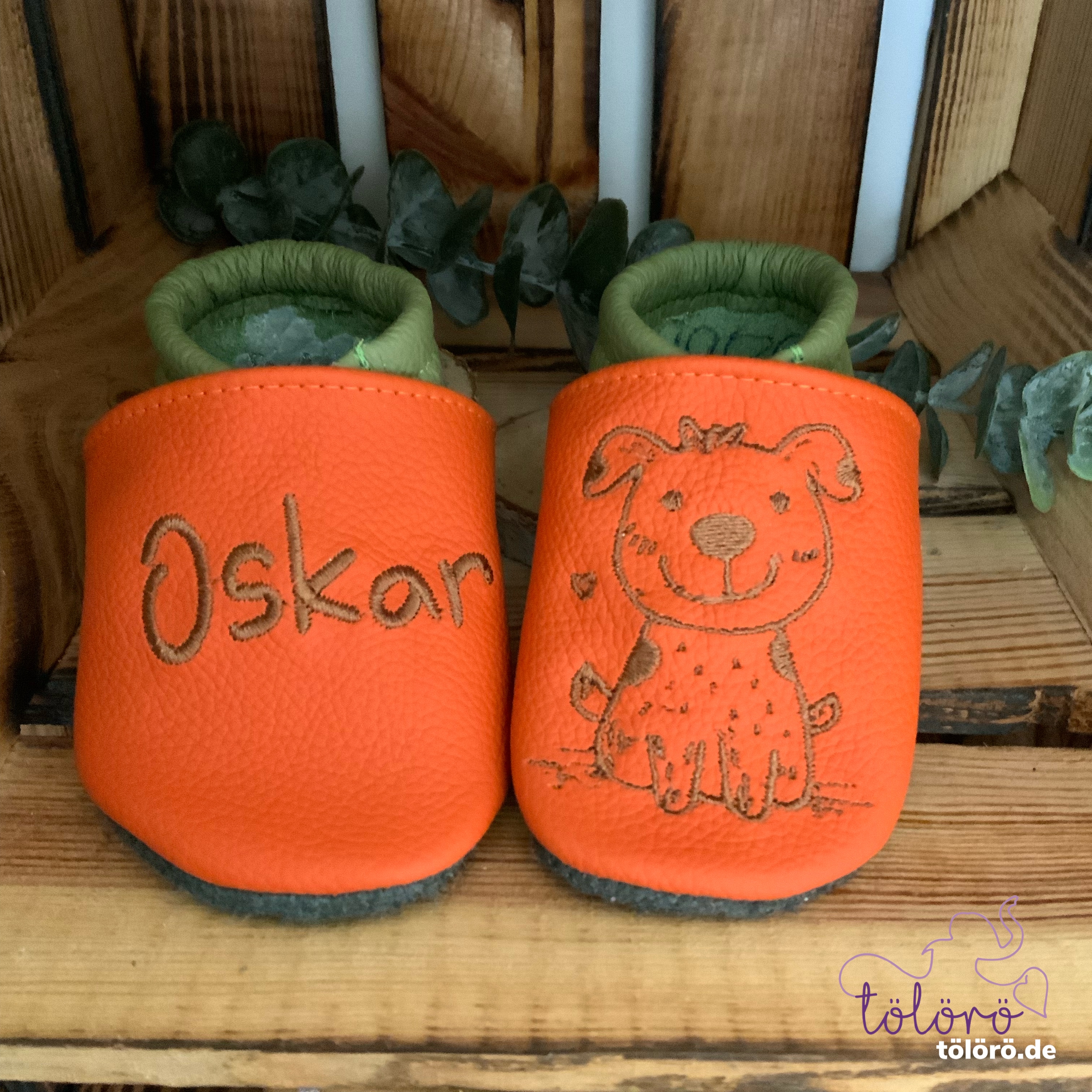 Personalisierte Lederpuschen aus echtem Leder – handgemacht & individuell bestickt