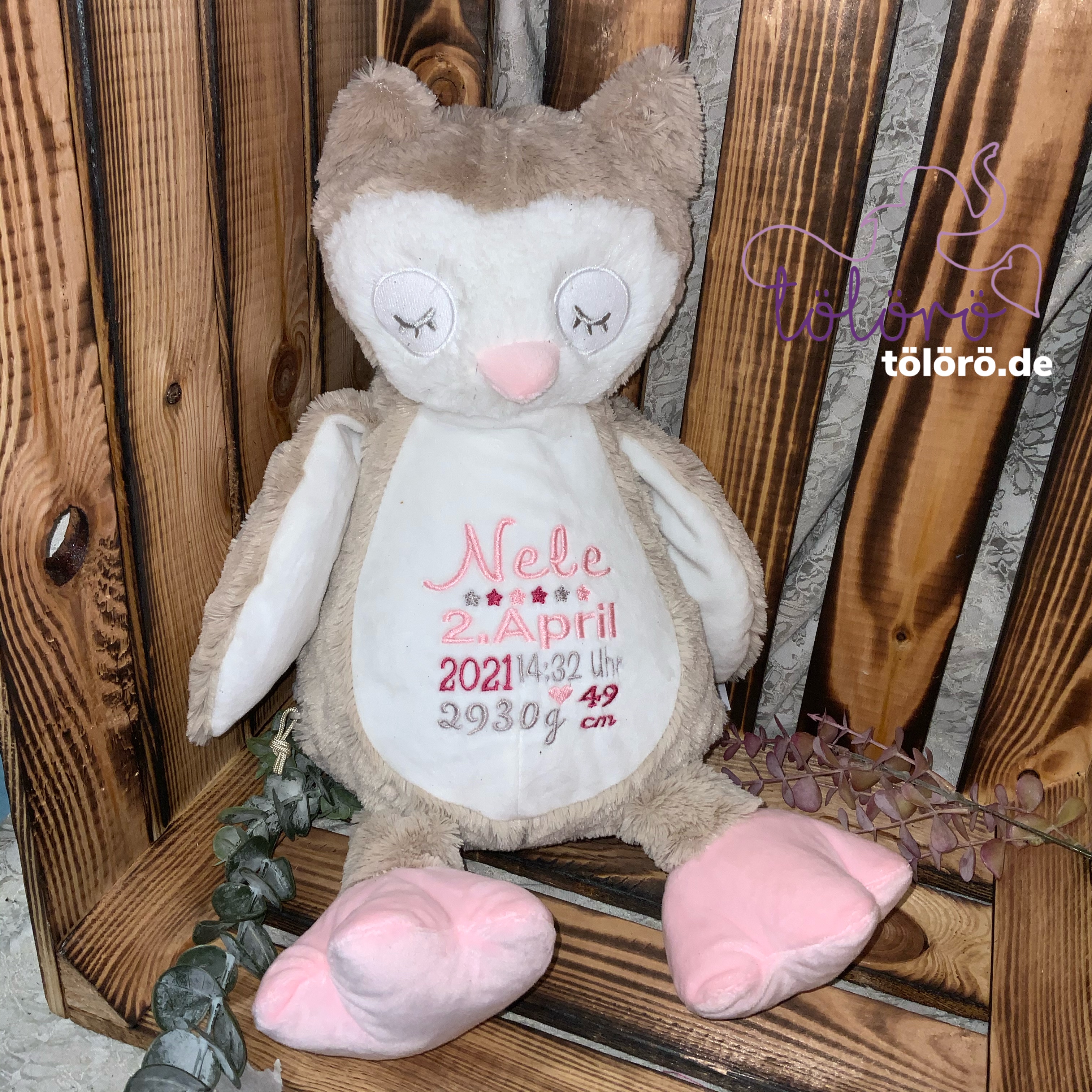 Plüschtier Eule mit Geburtsdaten
