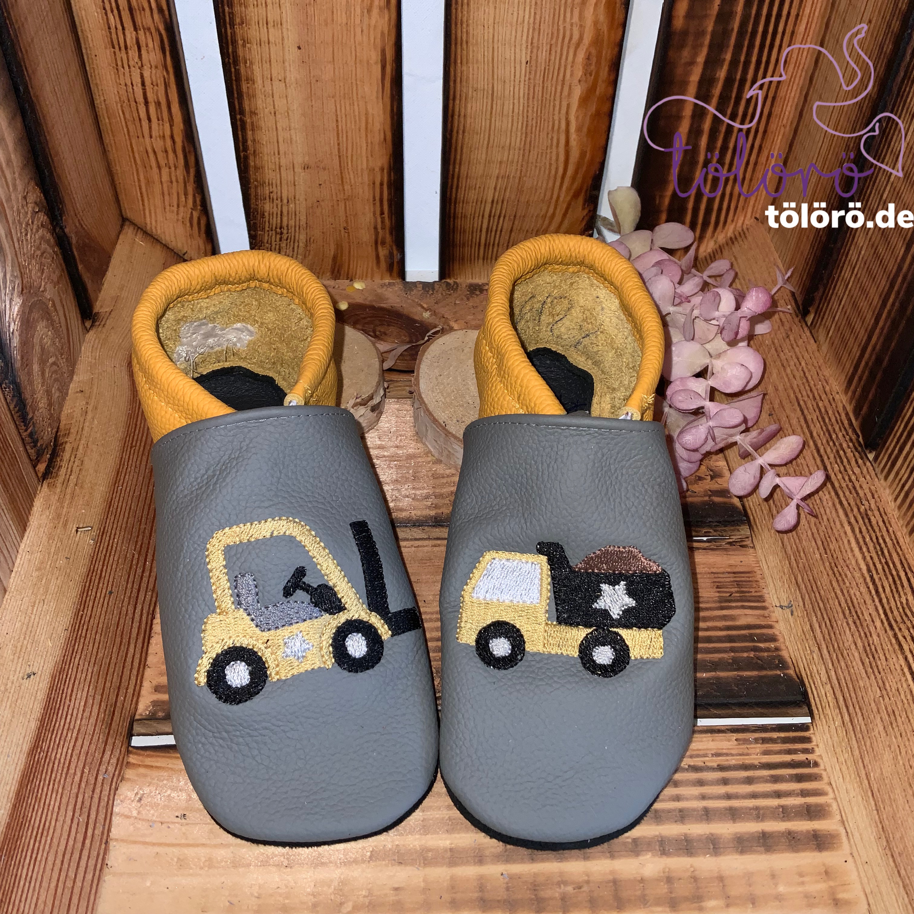 Stapler und Kipplaster mit Namen