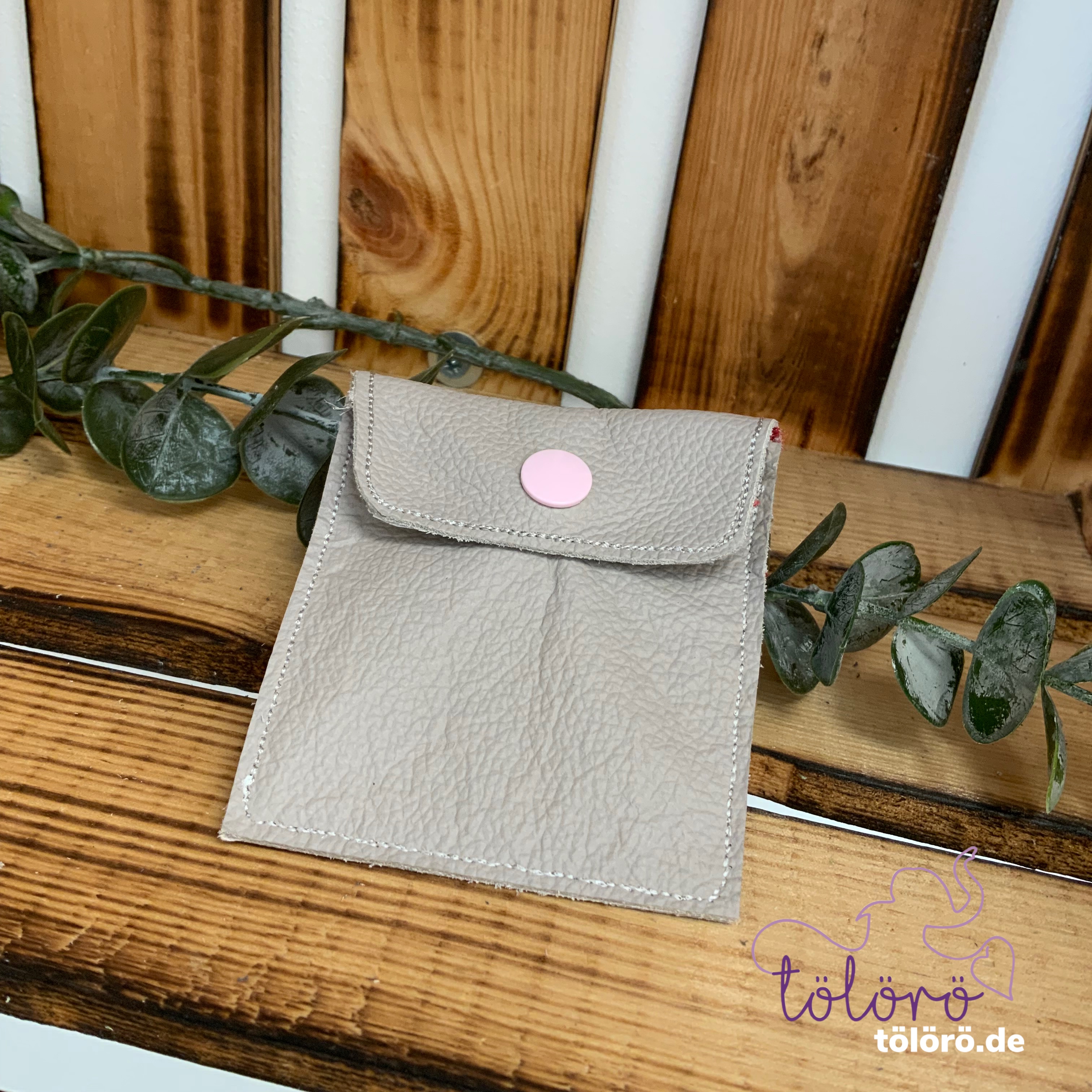 Das Täschchen kann nur auf einer Seite bestickt werden. Die Rückseite ist mit einem Druckkopf zu schließen.