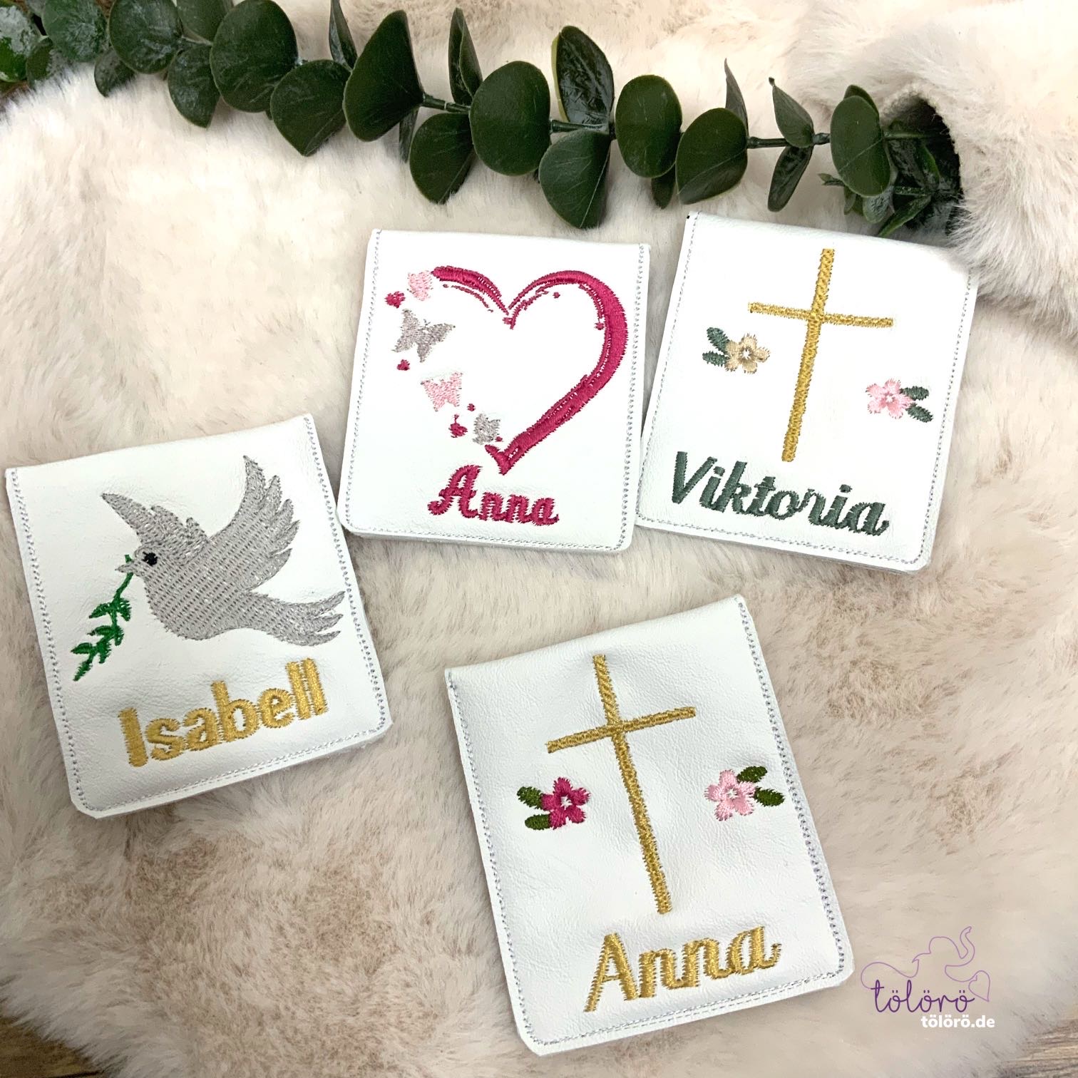 Die Tasche für den Rosenkranz kann passend zur bestellten Gotteslobhülle angefertigt werden.