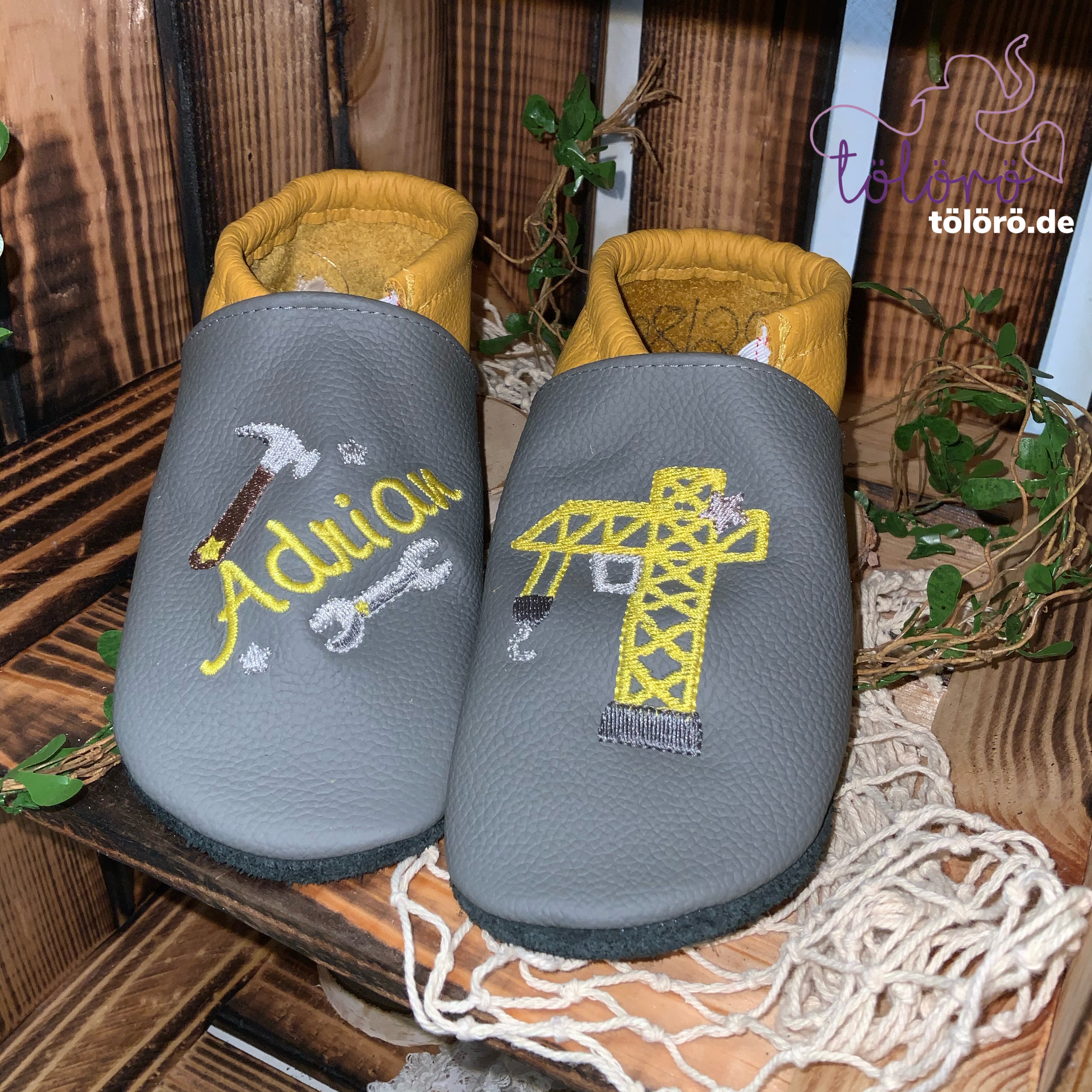 Unsere Lederpuschen mit Namen sind nicht nur praktisch, sondern auch ein emotionales Erinnerungsstück. Du bestimmst Farbe, Größe und Stickmotiv – wir setzen es in Handarbeit um.